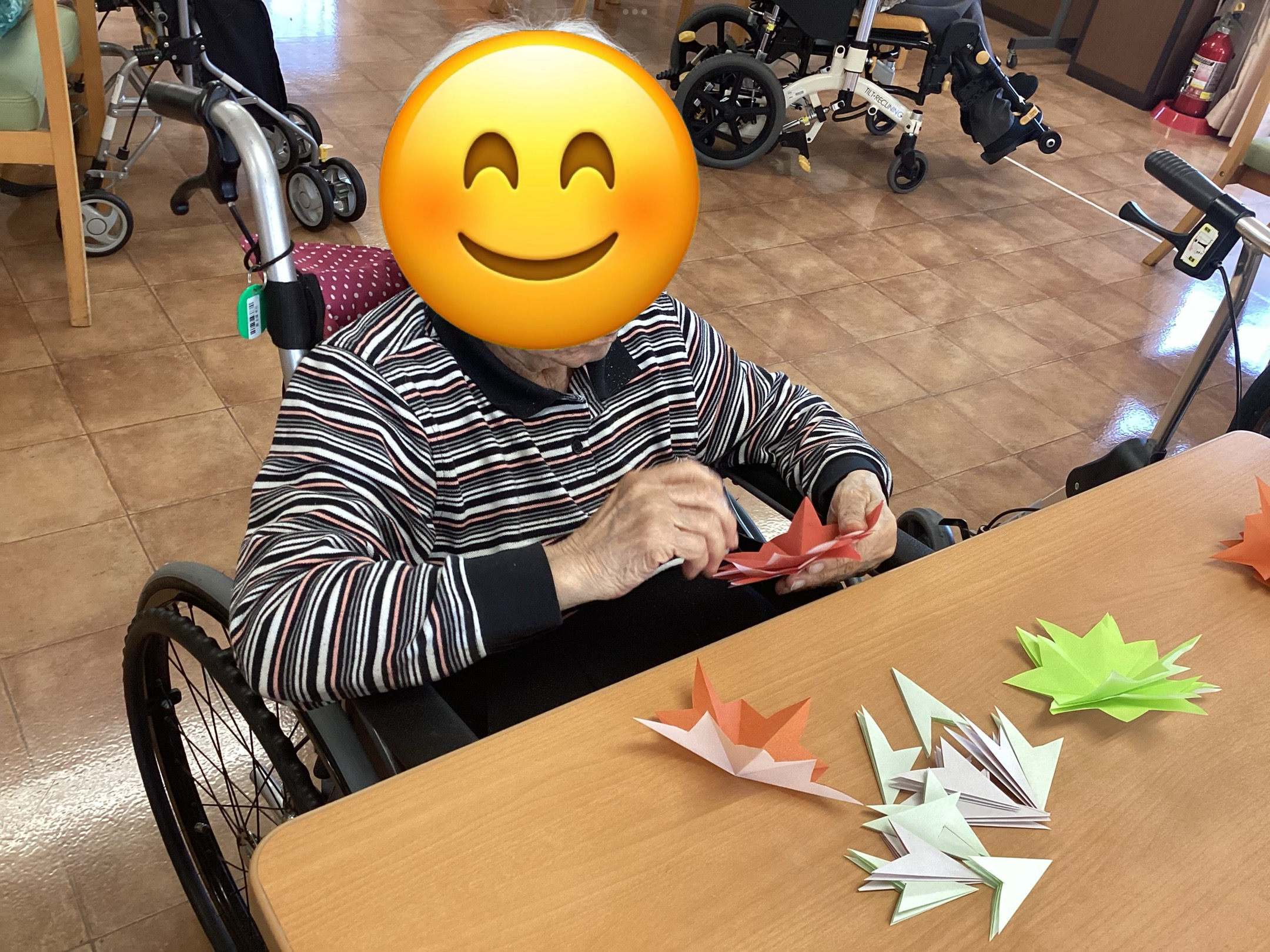 折り紙を切ったりおったりと器用に作って頂いています(^^)/