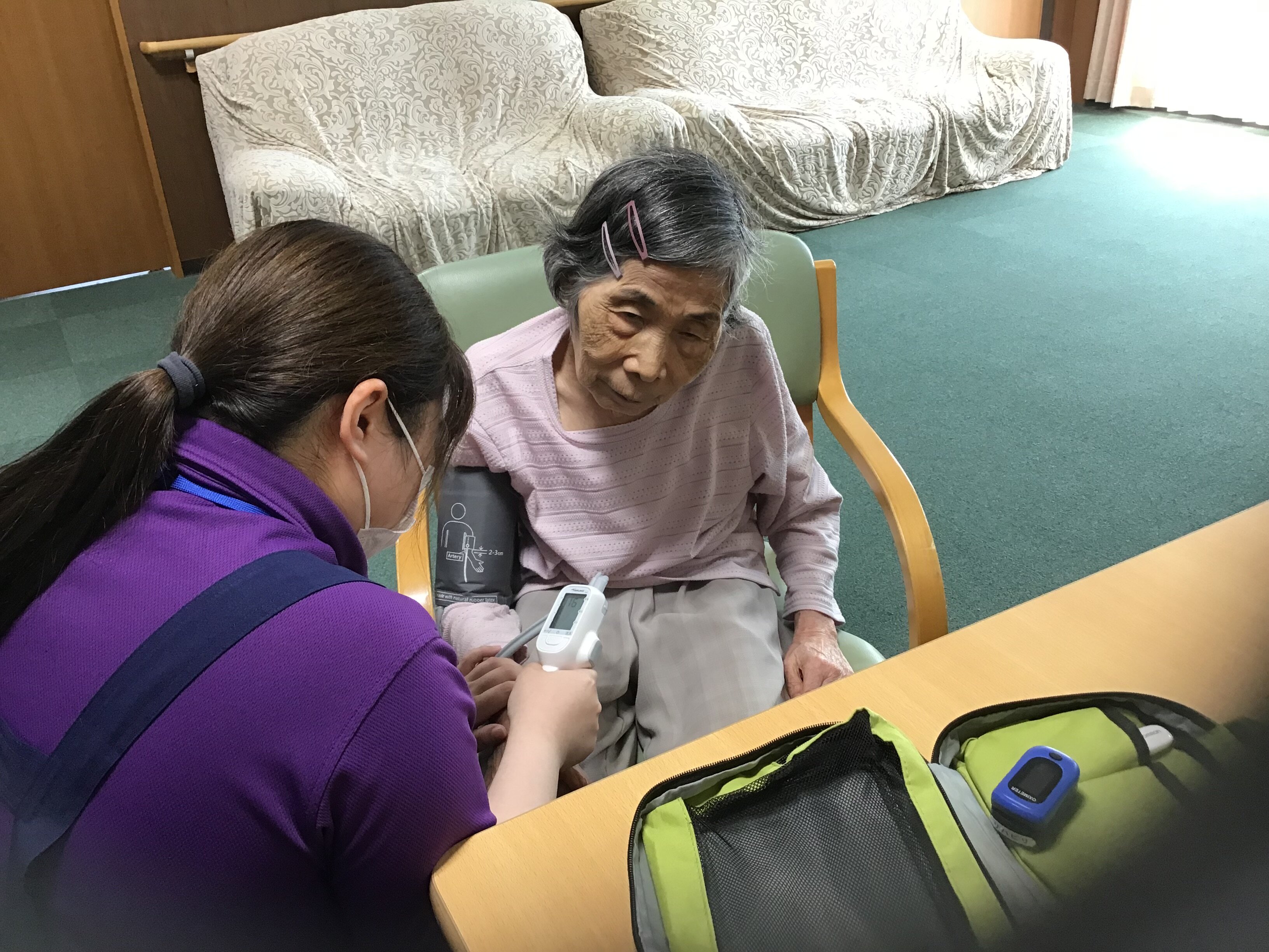 体調などお変わりないか看護師が確認しています。