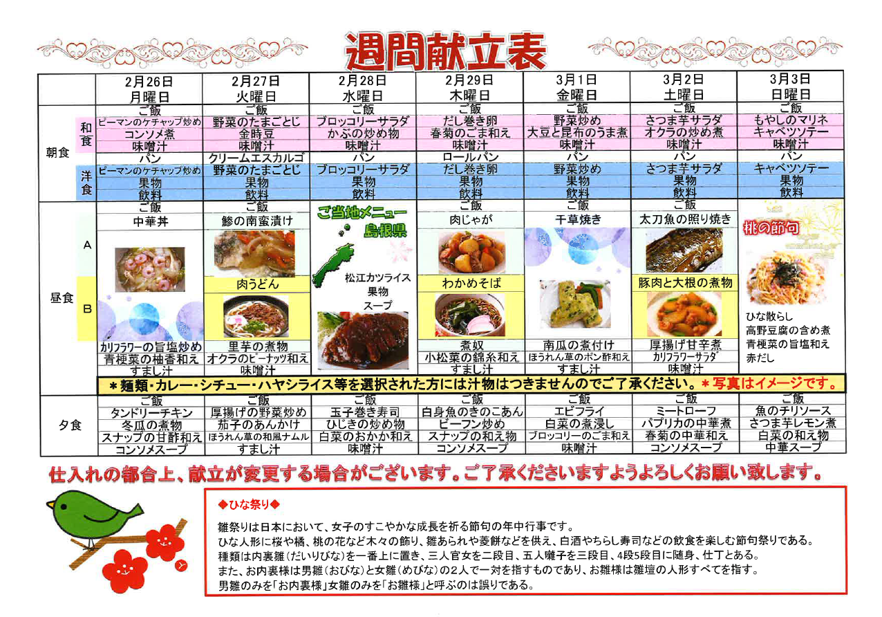 今週は島根県のご当地メニュー"カツライス"に、3月3日のひな祭りは"ひなちらし"を提供させて頂きます!