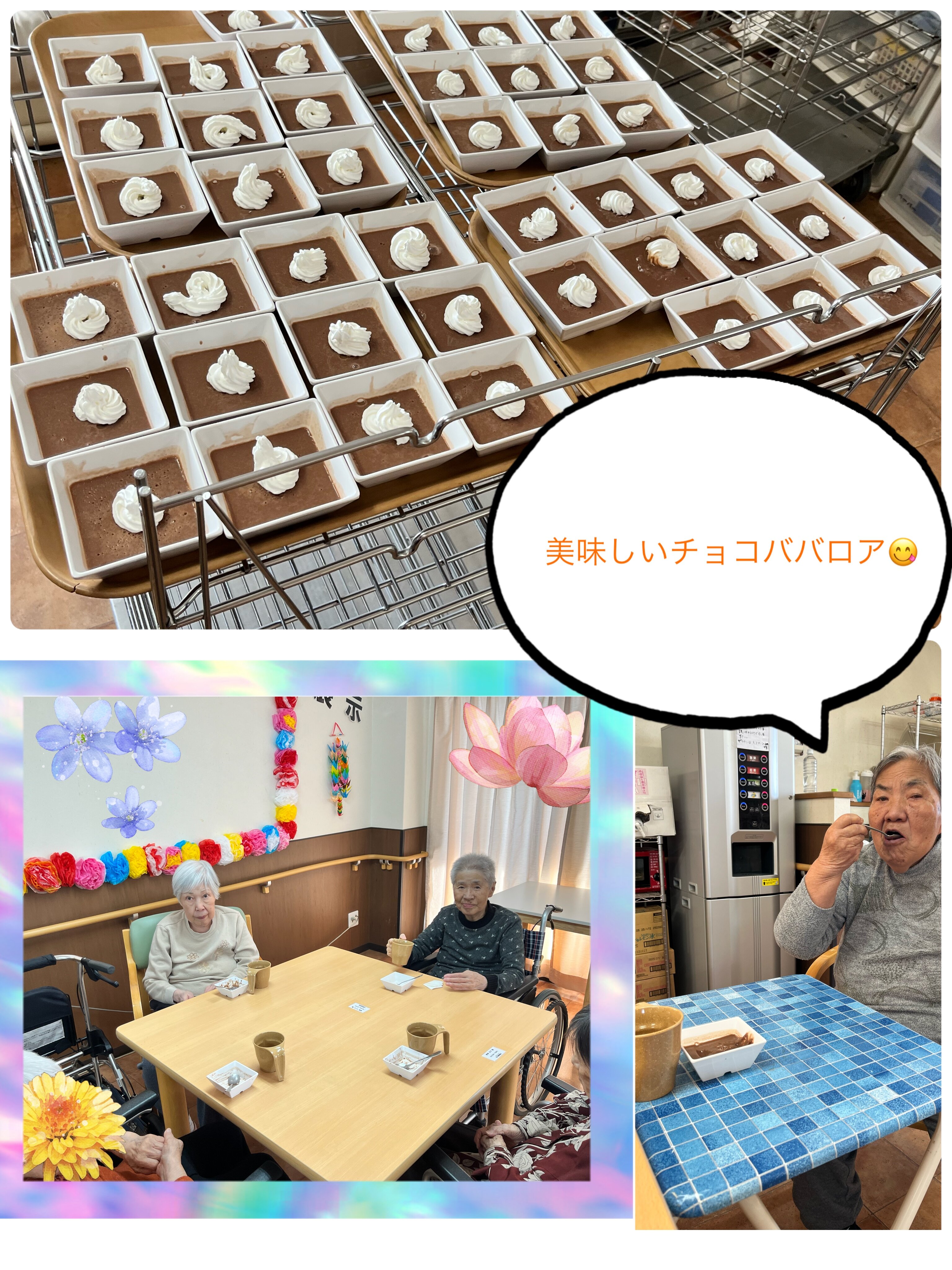 本日はおやつの時間に手作りのチョコババロアを提供させて頂きました!