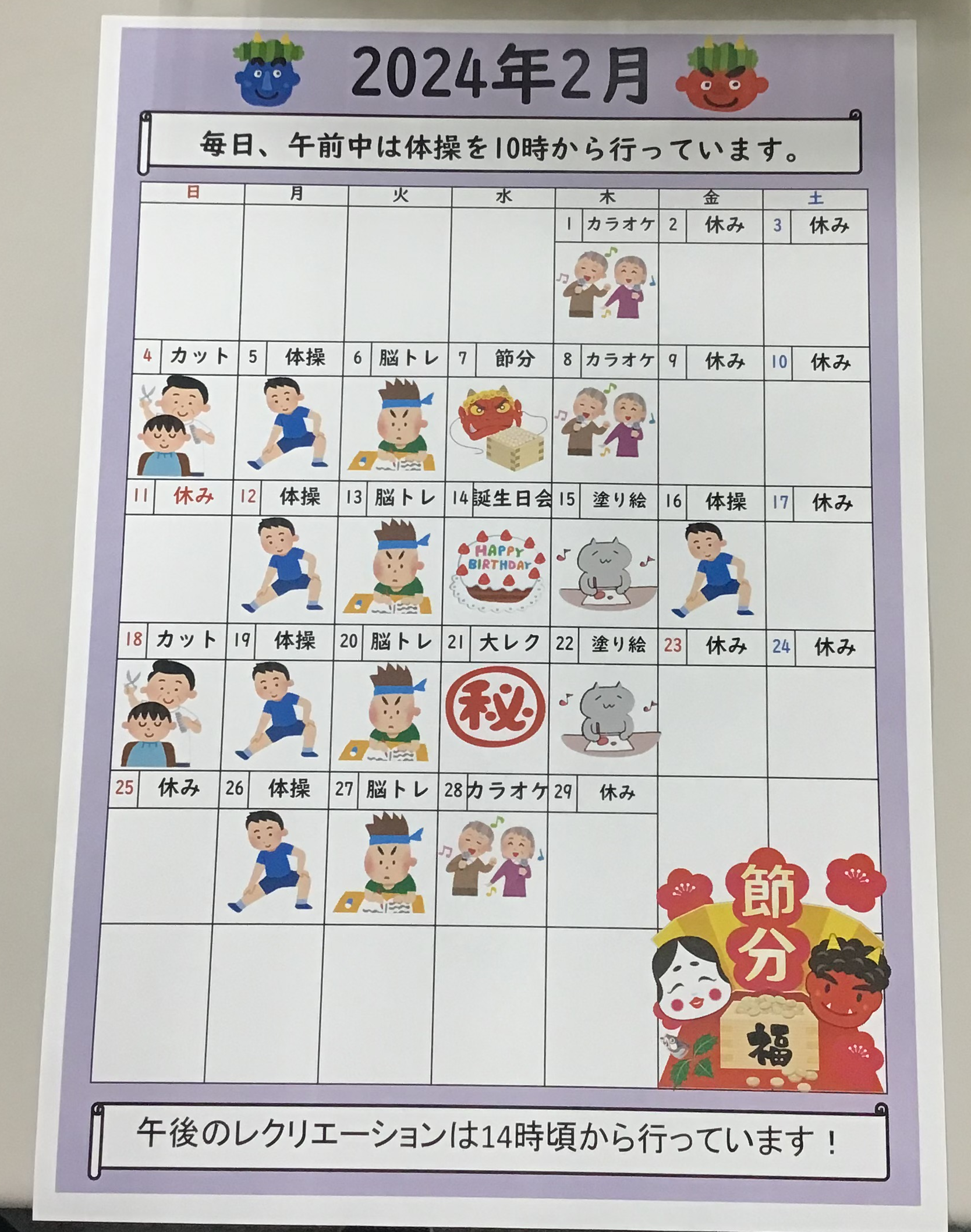 2月という事で節分のレクリエーションも行います!お楽しみに(*^▽^*)