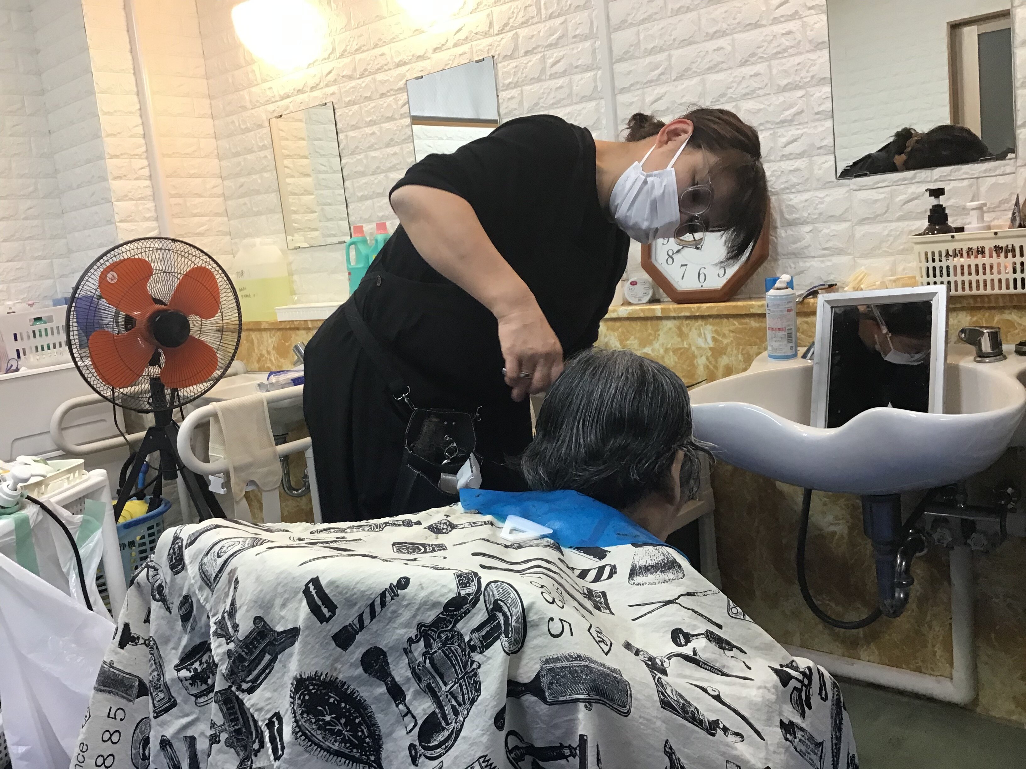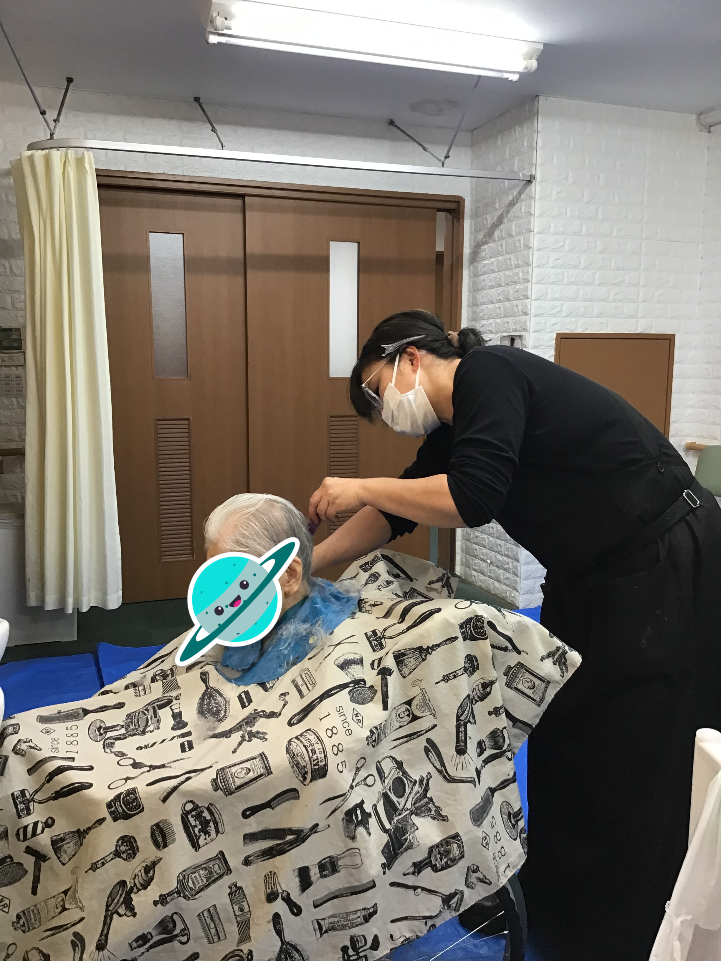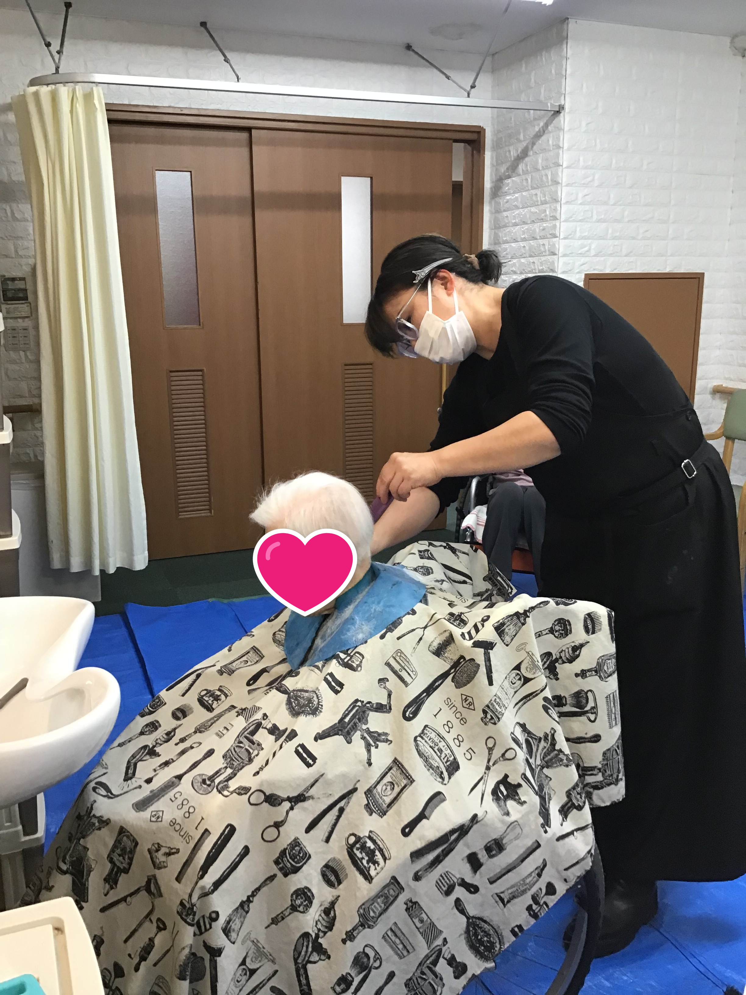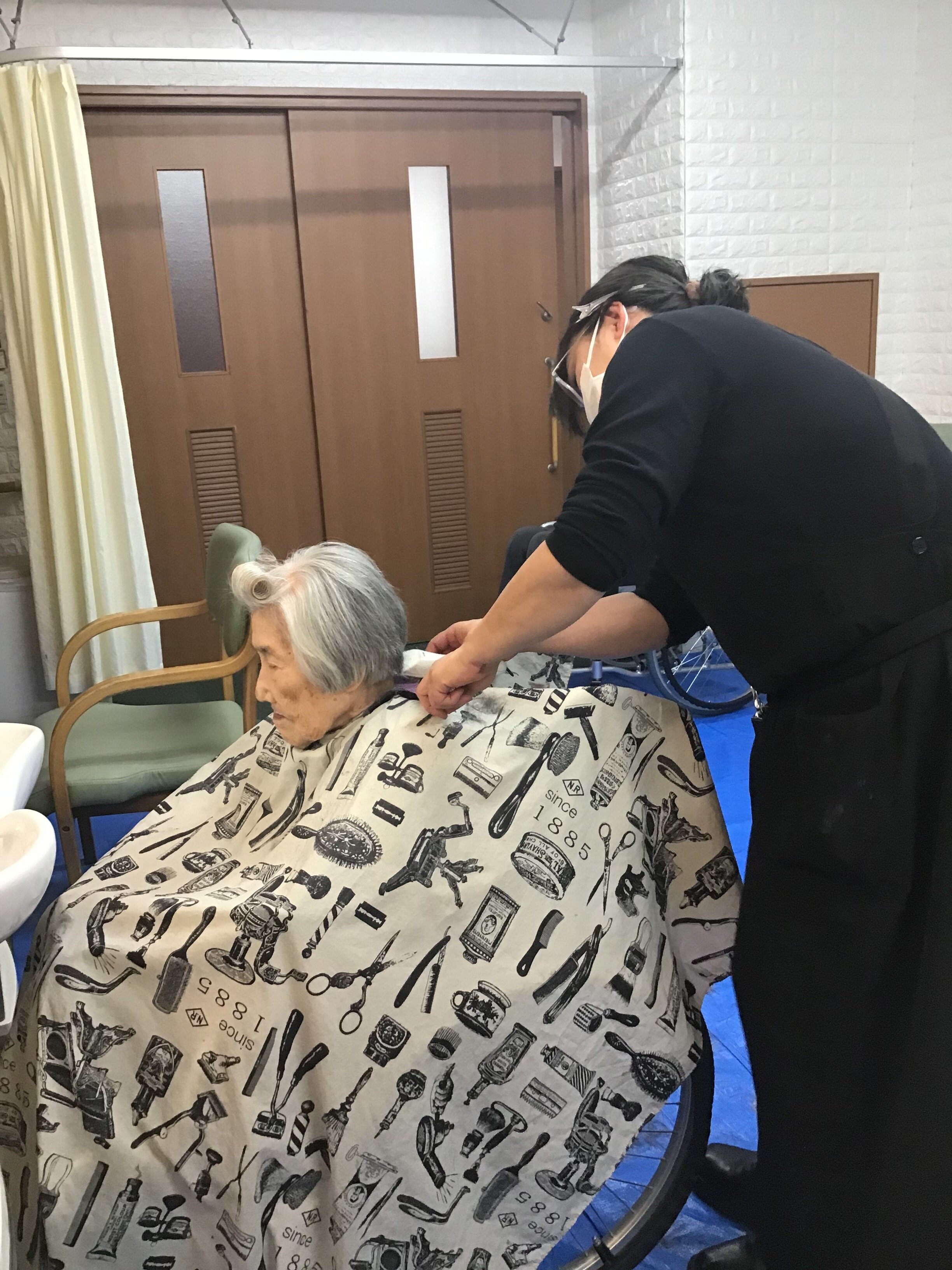 スーパーコート松原では月に2回(第1・3日曜日)に訪問理美容でご入居者の散髪してくださいます。
