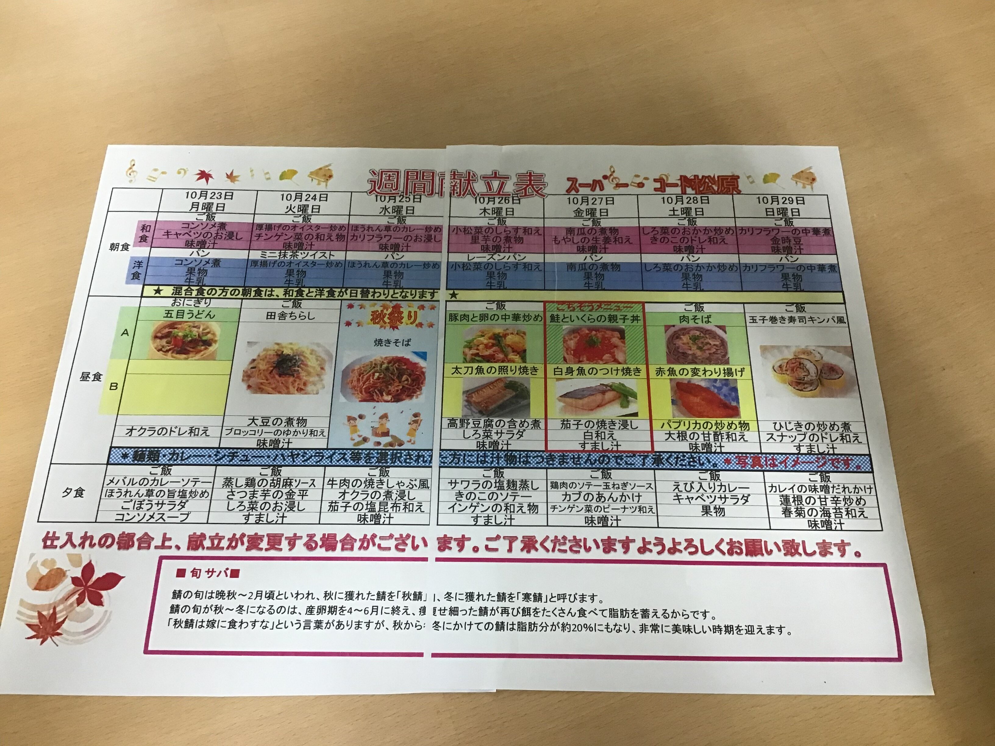 今回は10月23日~10月29日の食事メニューを紹介させて頂きます。