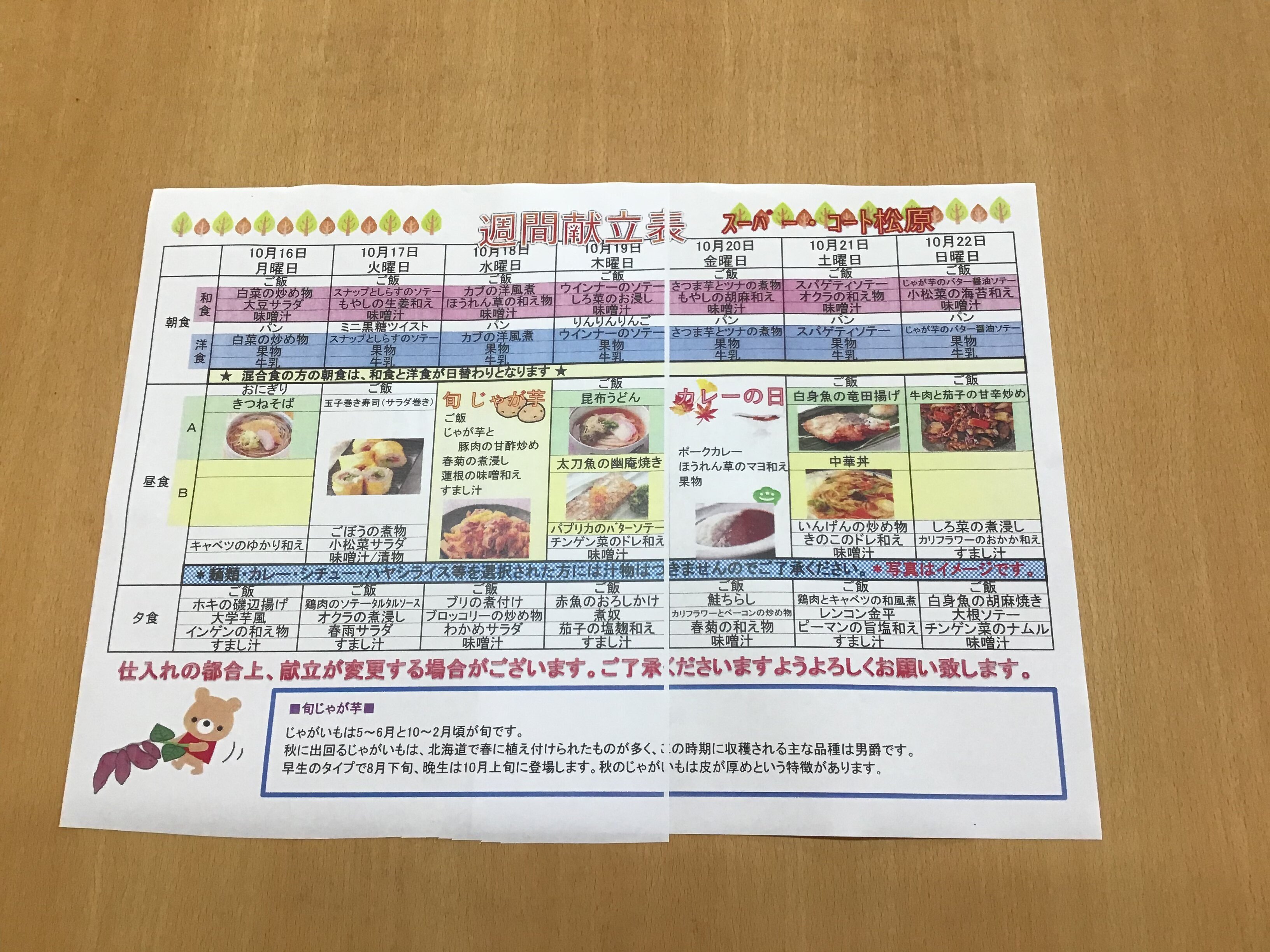 今回は10月16日~10月22日の食事メニューを紹介させて頂きます。