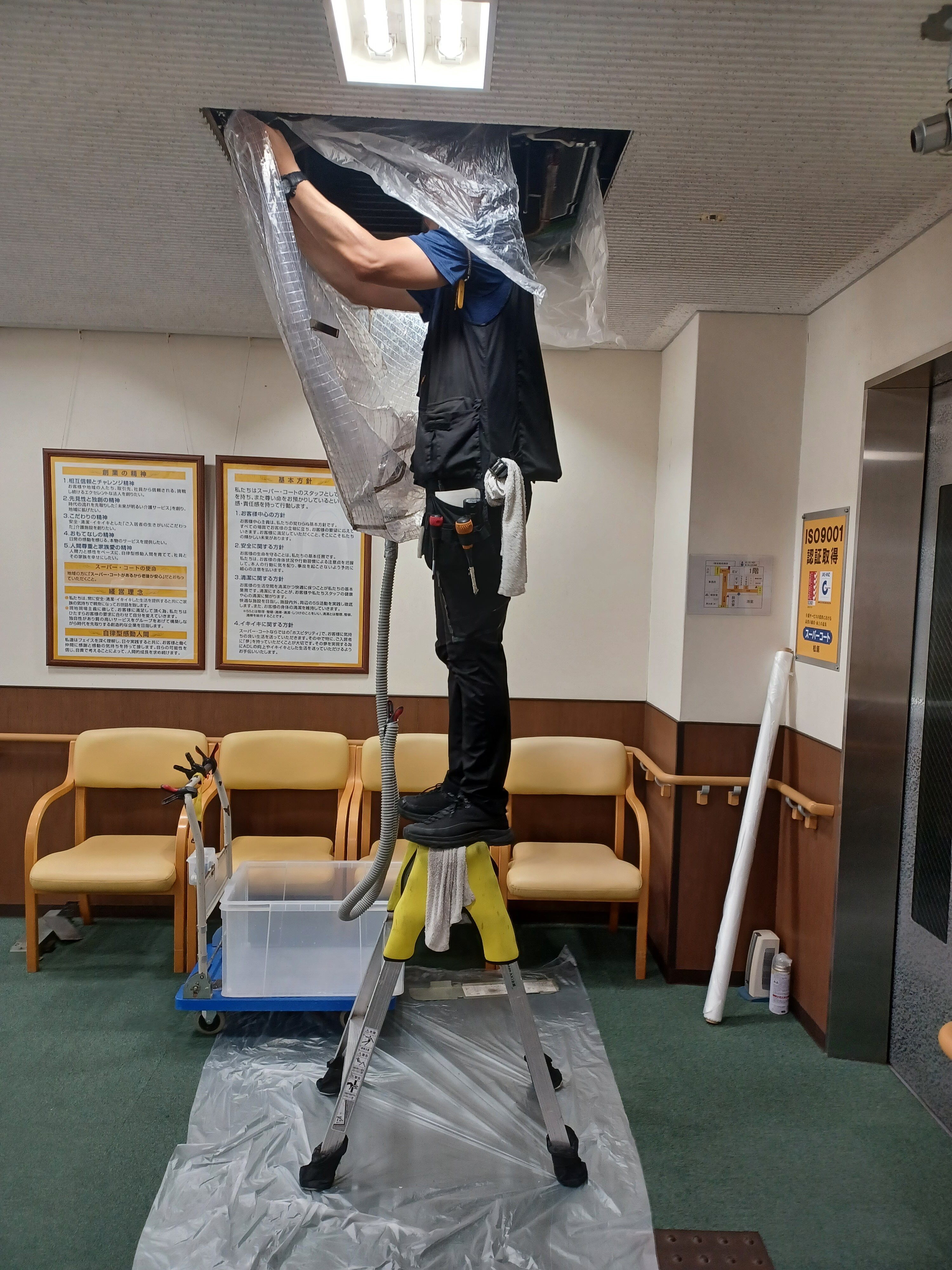 共用部のエアコン洗浄の様子を紹介させて頂きます。