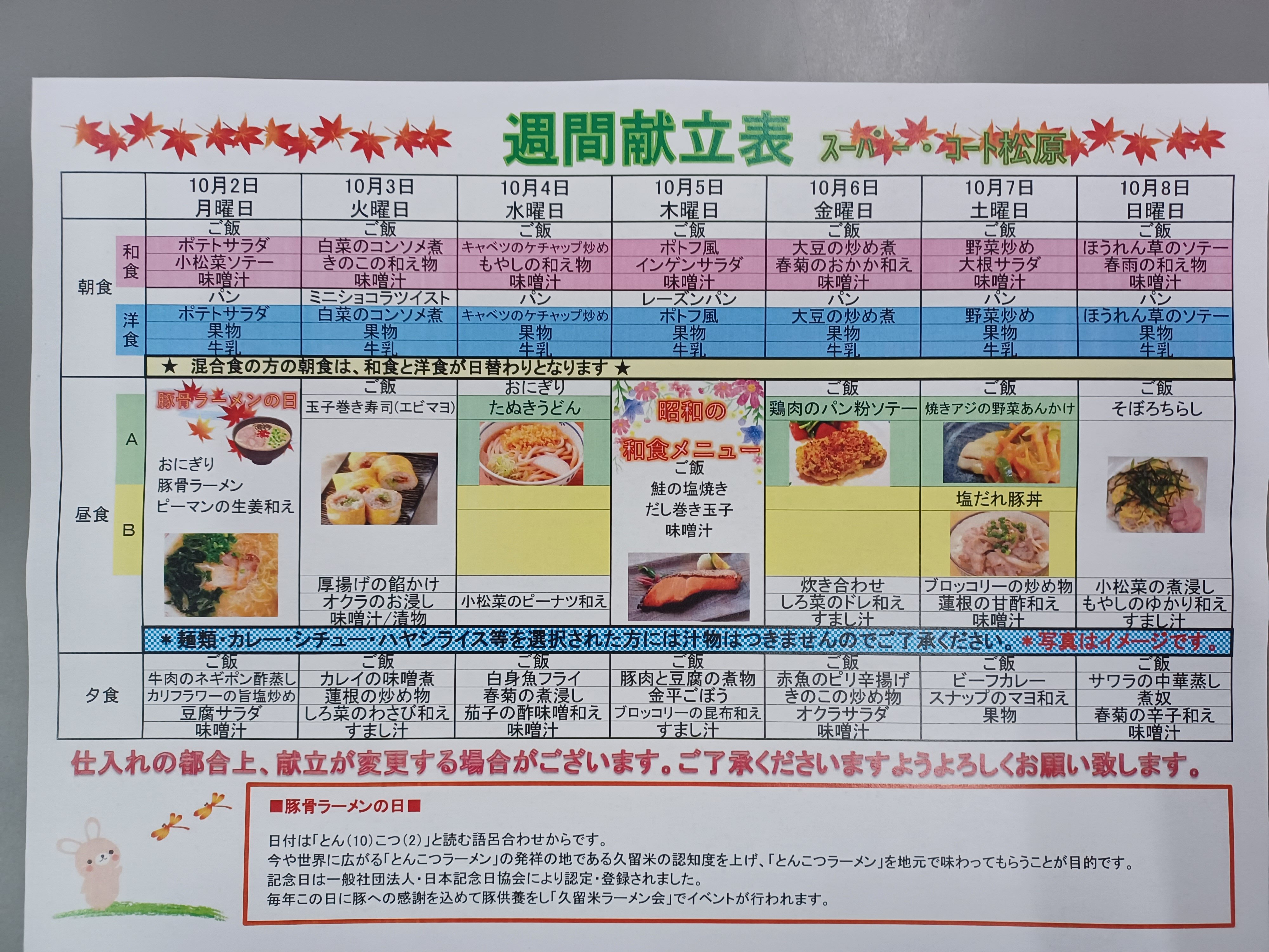 今週の食事メニューを紹介させて頂きます。