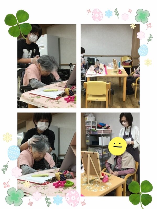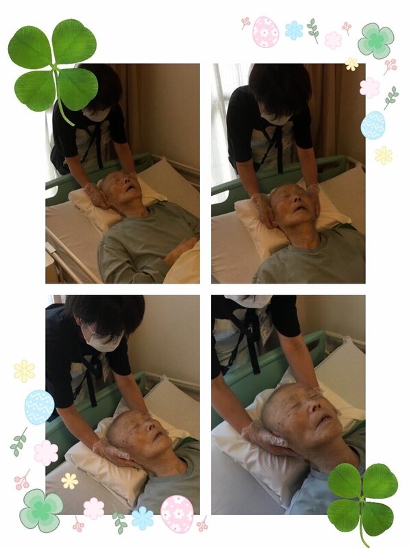 ご入居者もとても楽しみにされております。髪の毛を触ってもらうと気持ちよくなりますよね(^^)