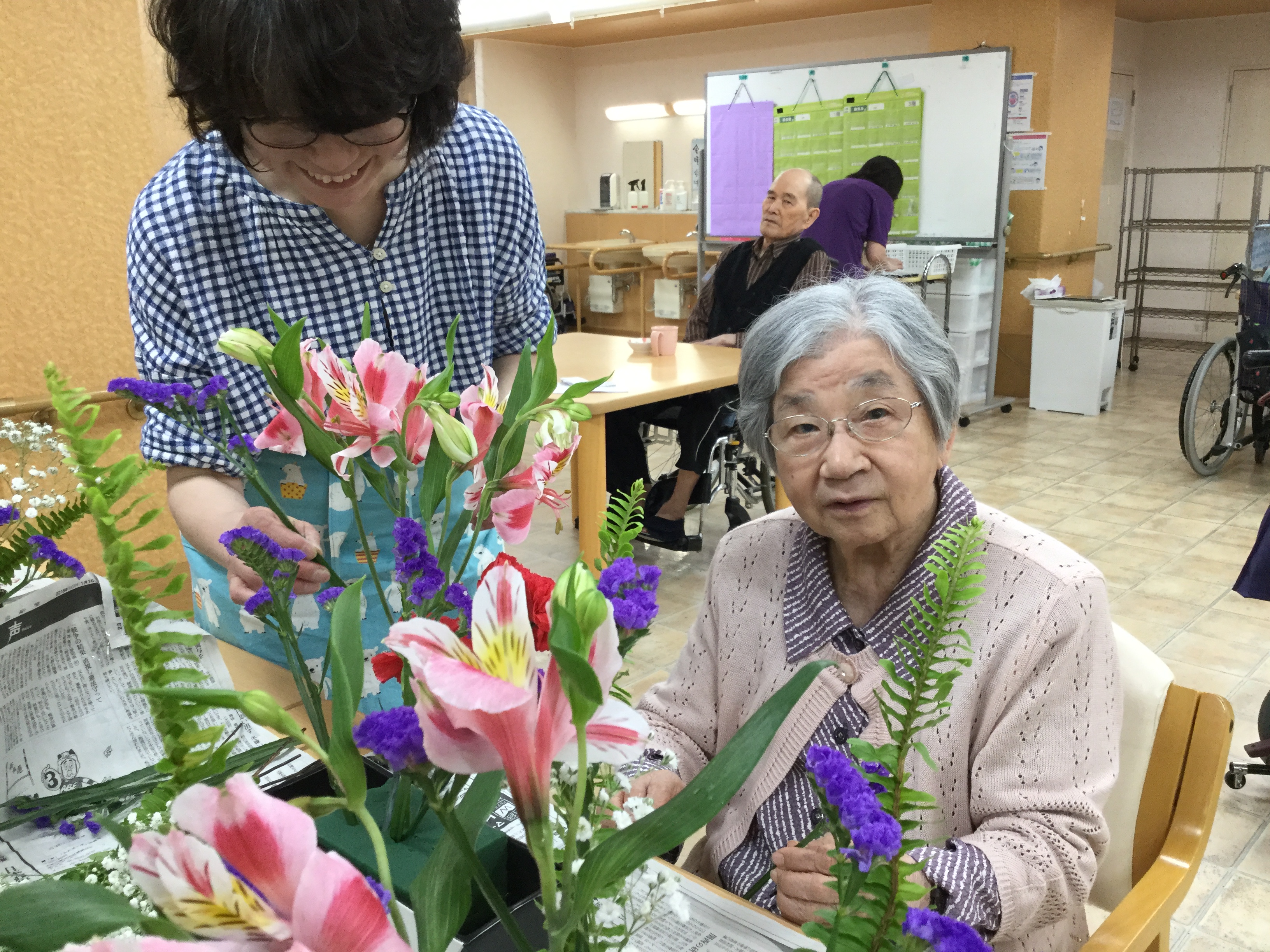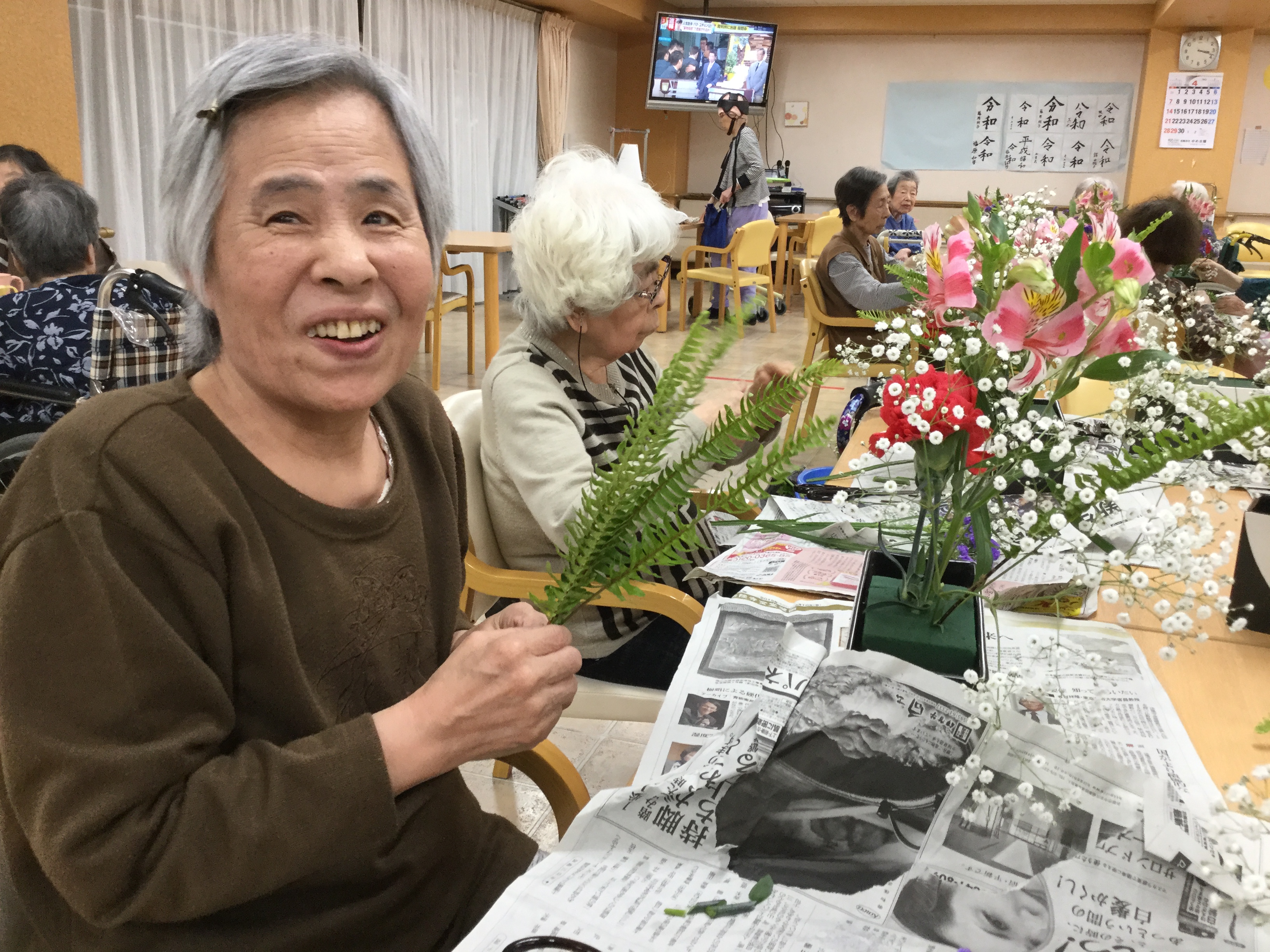 次に紹介するのは生け花レクの様子です。