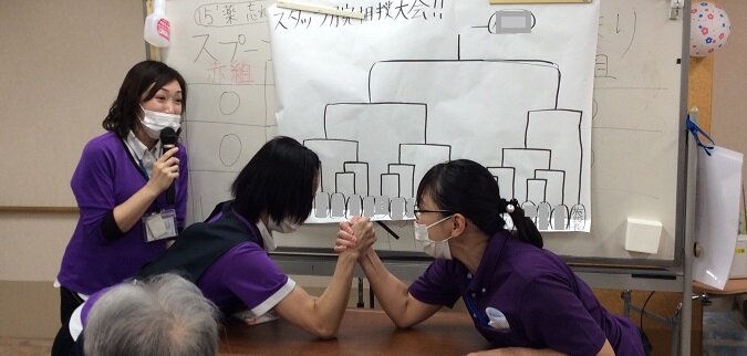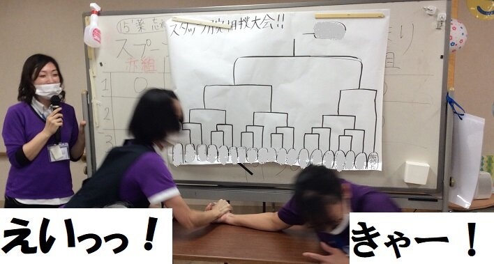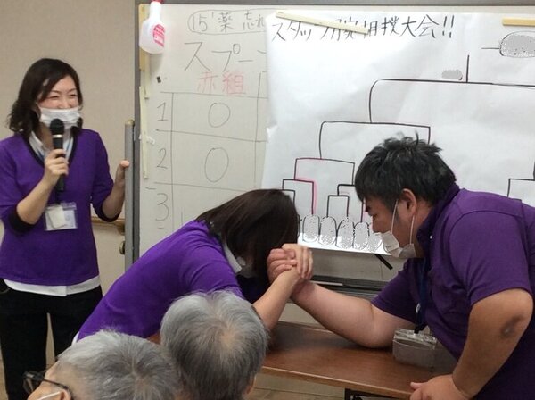 さて、お次の演目はスタッフ総出による「ガチンコ腕相撲大会」!