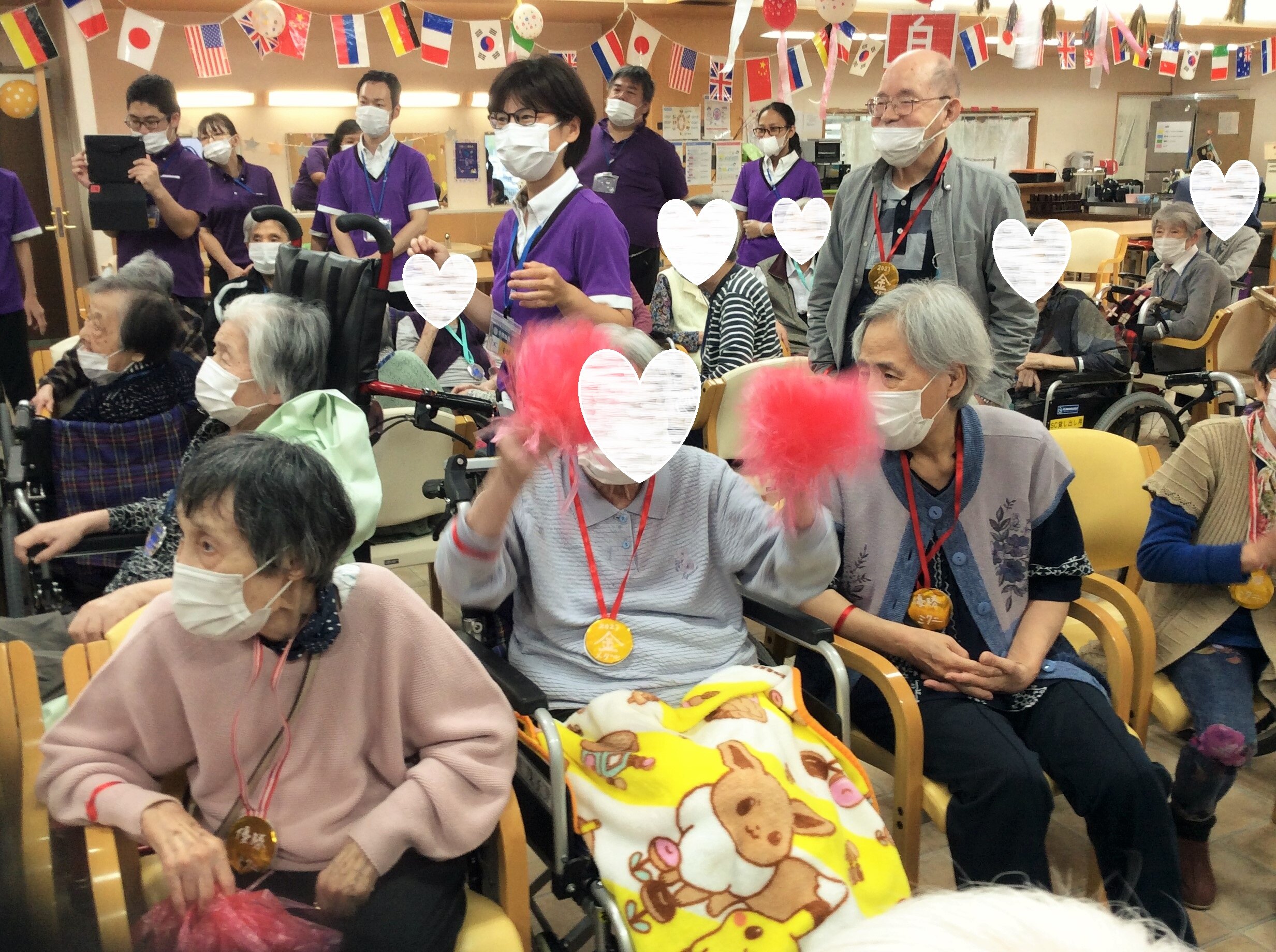 大盛り上がりの会場で、スタッフもご入居者も声を枯らして応援します☆