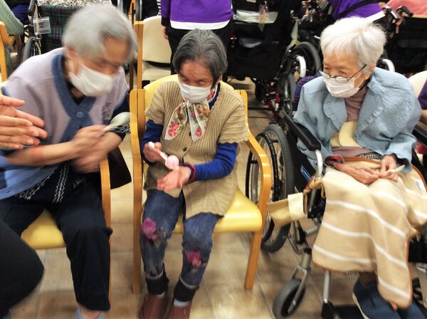 まずは施設長からのご挨拶があり、準備運動の椅子体操。