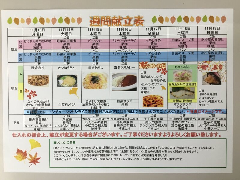 週末になりましたので来週の献立表を更新させて頂きます♫