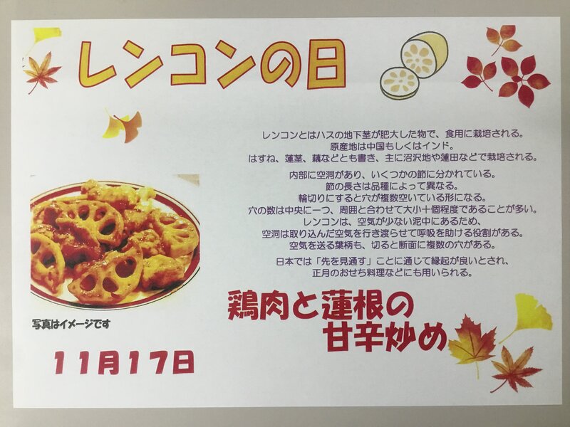 11月17日(金)はレンコンの日ですっ!!!\(^o^)/