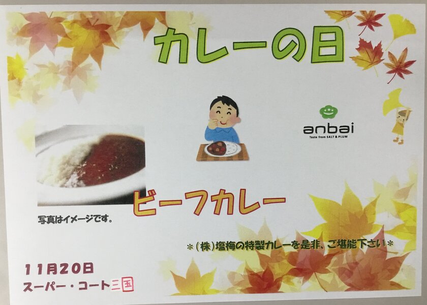 11月20日(月)塩梅カレーの日!ということで今回はビーフカレーの提供だそうです♫