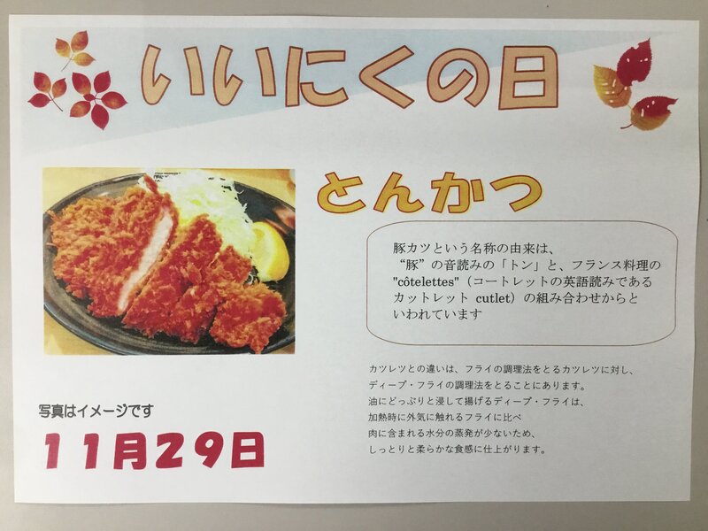 11月29日(水)【いいにくの日】でとんかつを提供致します( *´艸`)