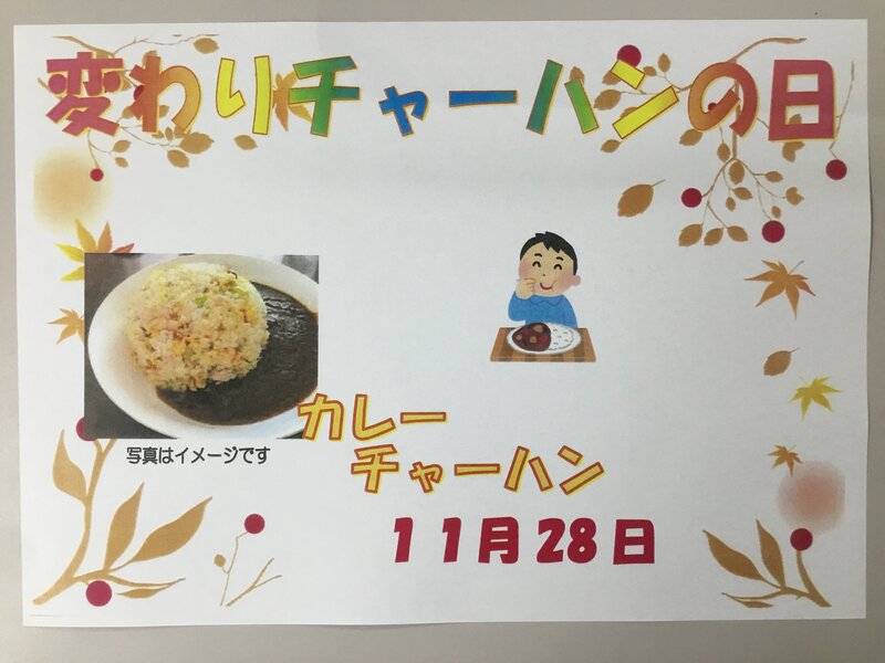 11月28日(火)変わりチャーハンの日でカレーチャーハンを提供いたします♫