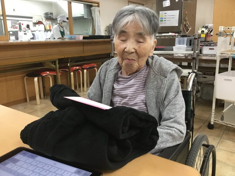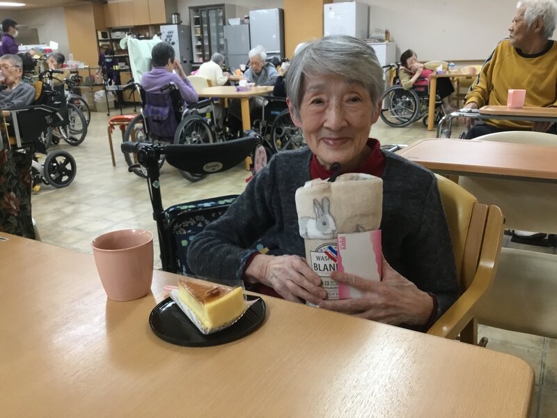歌を歌ってお祝いをし、ささやかながら施設よりプレゼントとケーキ
