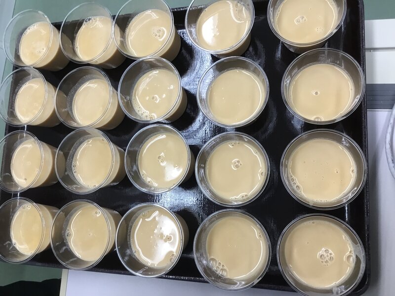 そのあとみなさま美味しく黒蜜豆乳きな粉プリンを食べていただき