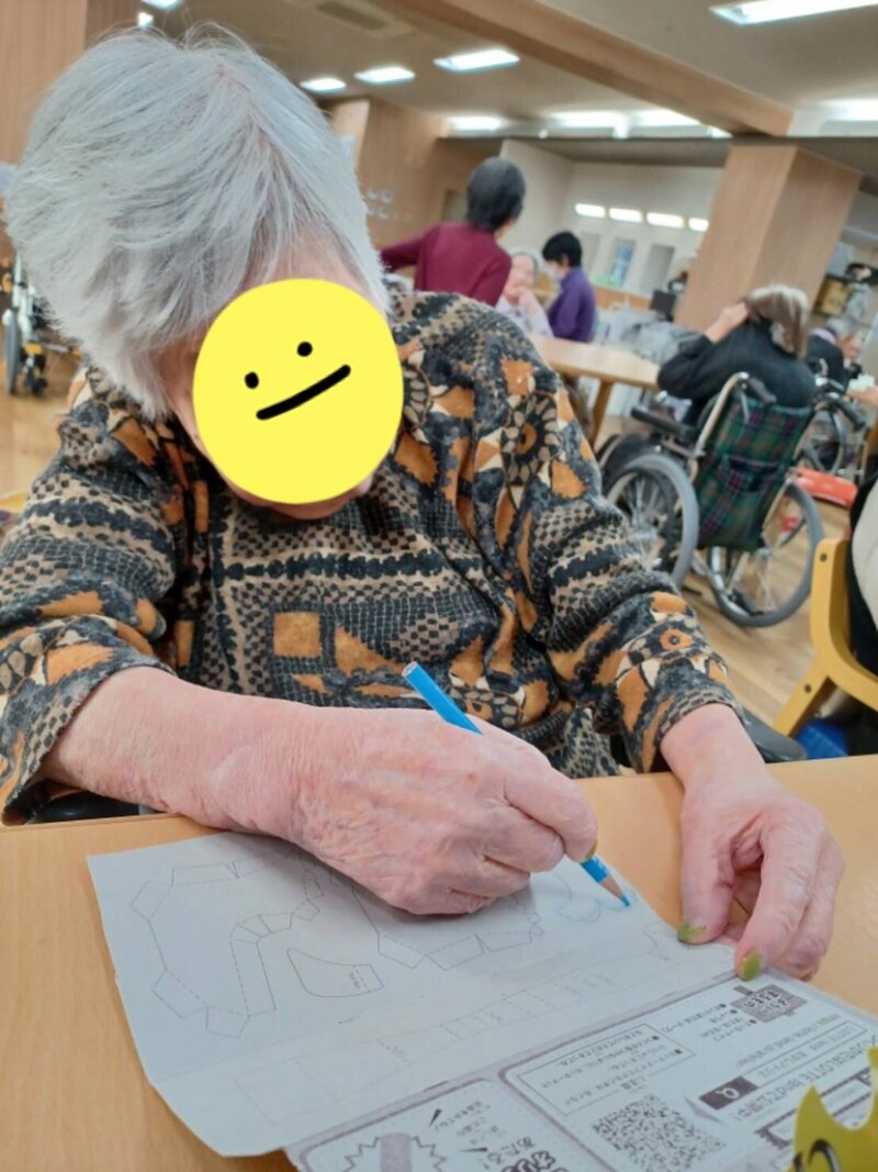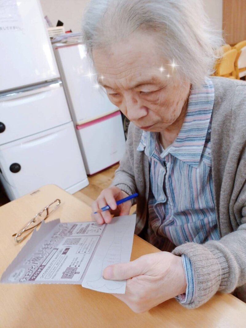 先日、食堂にて過ごしていらっしゃるご入居者の方に何かしてもらおうと