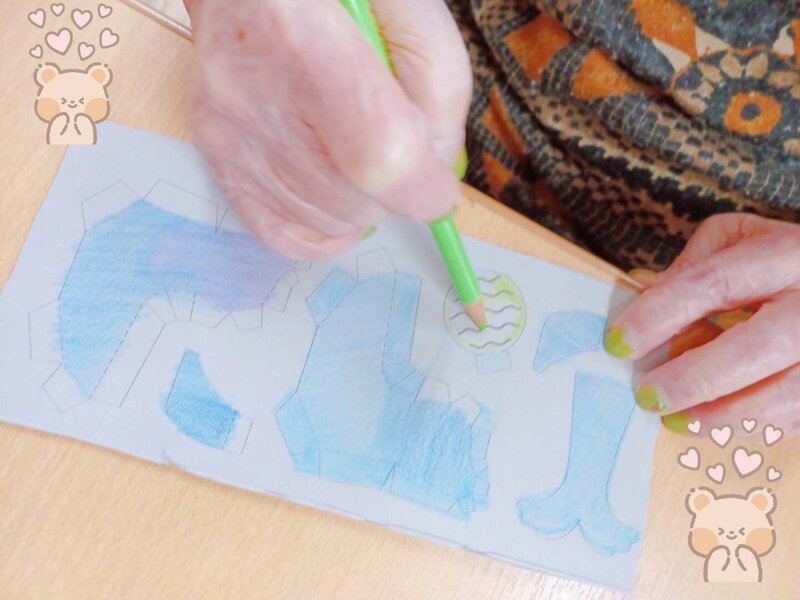 ご入居者の方に色塗りで塗り絵をしてもらい・・・