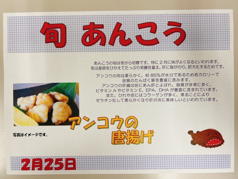 2月25日(日)は【旬のあんこう料理】を提供させて頂きます( *´艸`)