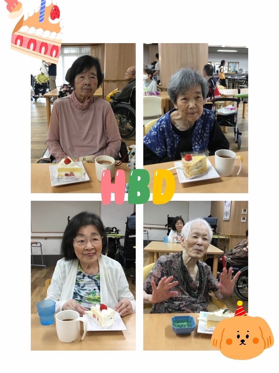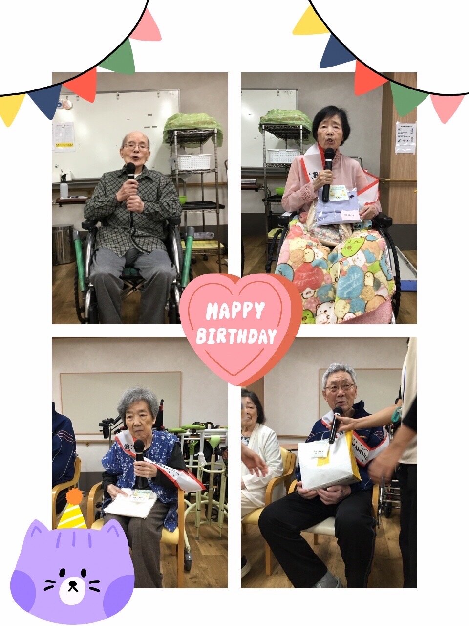 ブログ再開での記事は8月度のお誕生日会のご様子です。施設からのお祝いのプレゼント、ケーキを提供し