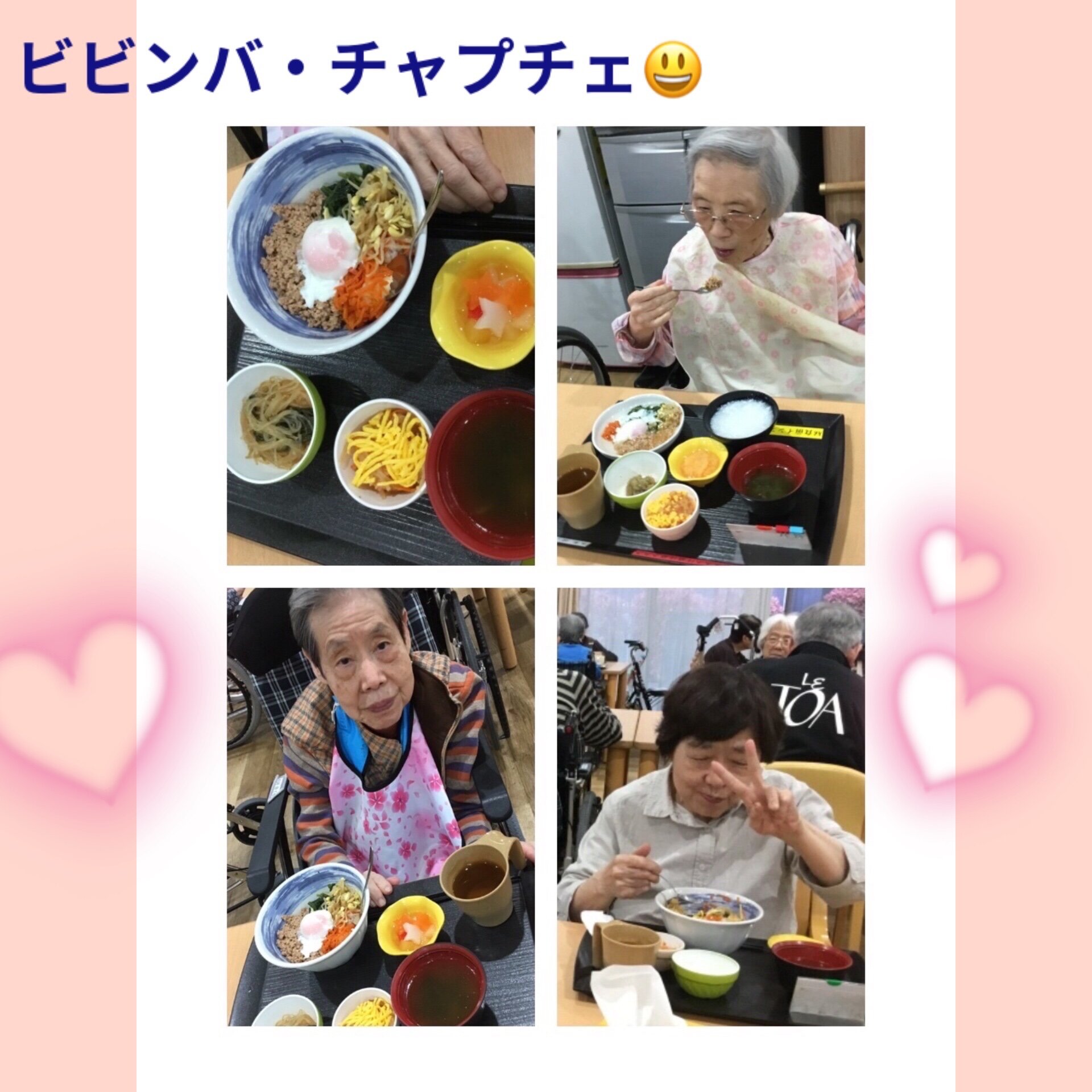 いつもスーパー・コート三国ブログをご覧いただき誠に有難うございます。昨日はご馳走メニュー提供日でした。メニュー:ビビンバ、チャプチェ、大根サラダ、中華スープ、杏仁豆腐皆様笑顔で召し上がっておられました(*'ω'*)
