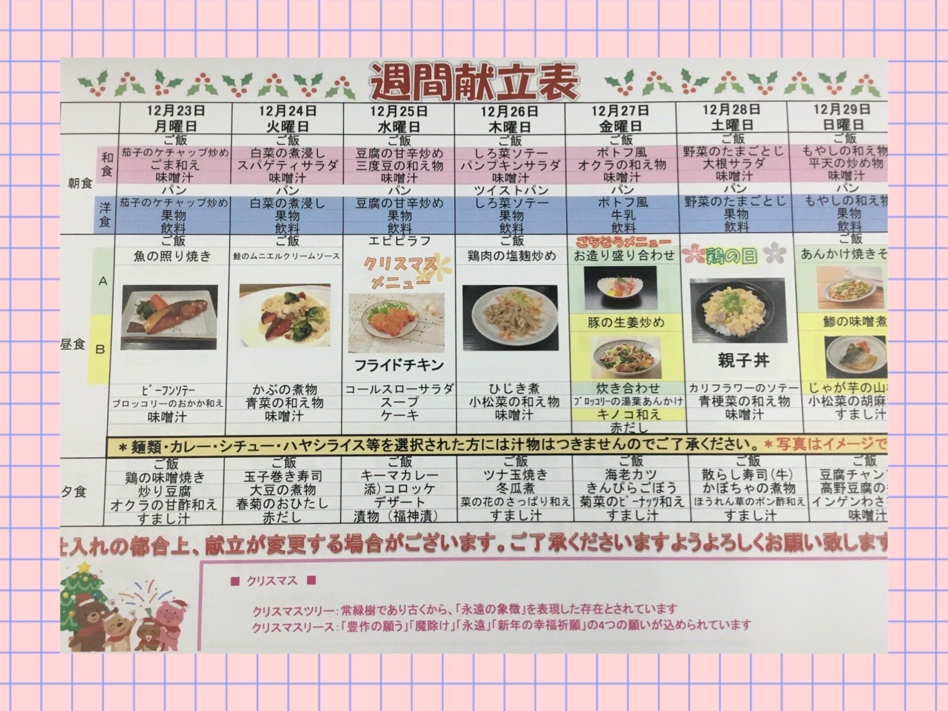 26日(金)はご馳走メニュー提供がございました。