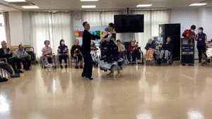 職員のダンスの後は衣装チェンジで登場!みんなが知っているピンクレディーのUFO♪