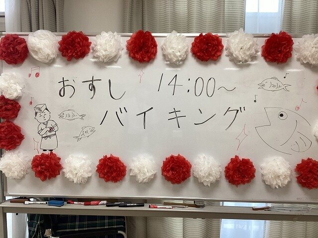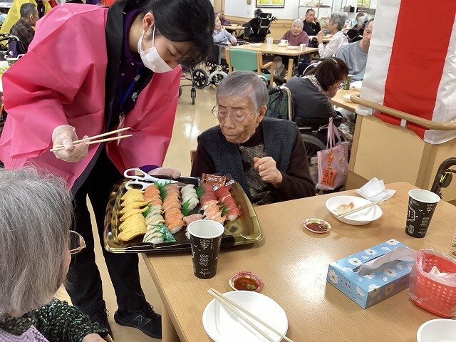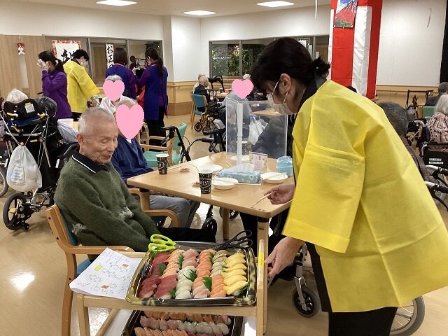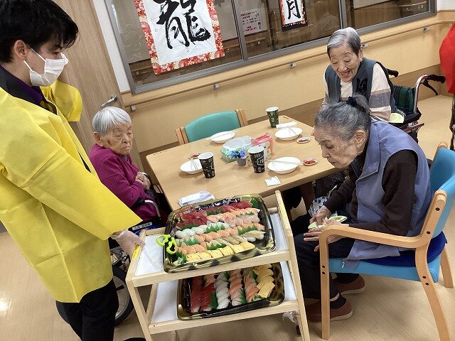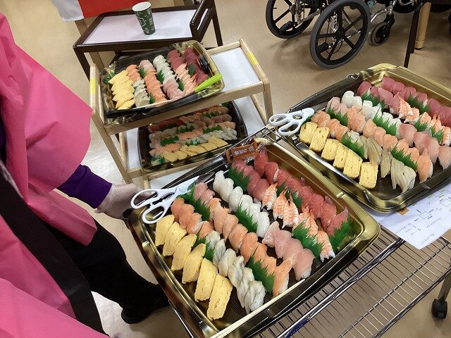 職員がす〇ざんまいポーズを決めたところでお寿司パーティ開始です!(^O^)/