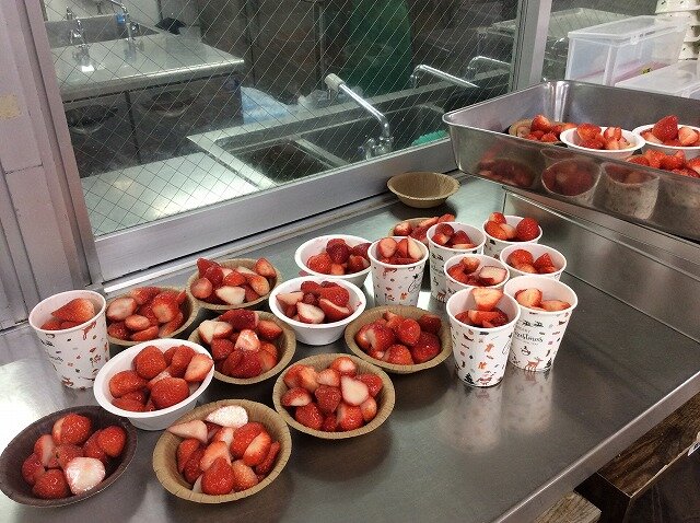 お好み焼きやたこ焼きを食べた後はデザートに御座候を提供しました♪