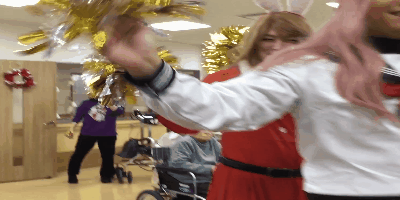 予めご用意して下さったポンポンを入居者様が持ち一緒にダンスをします(^▽^)/