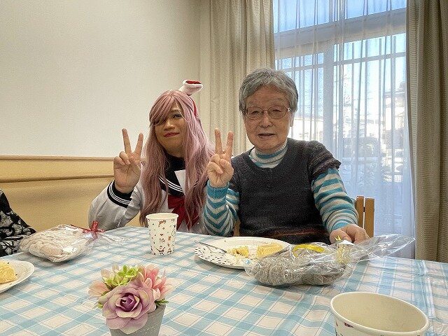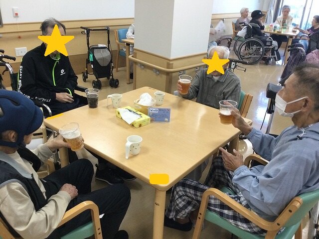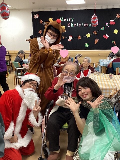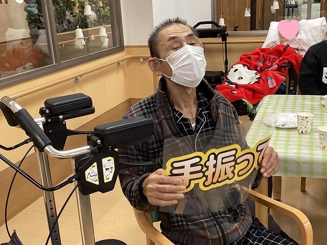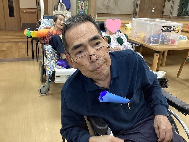 施設長を含む普段接する職員がいつもしない格好をしていますが、皆様さすがに誰が誰かしっかり分かっておられました(笑)