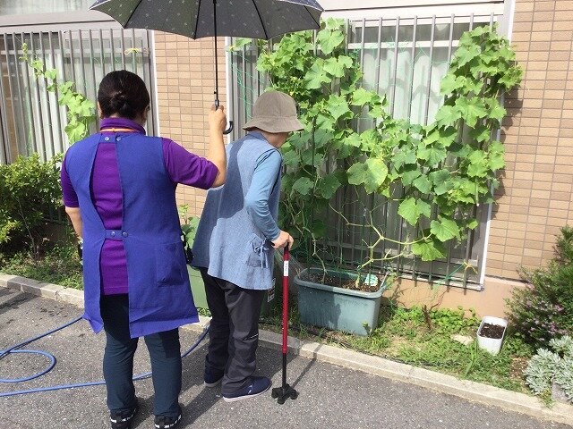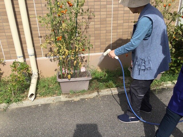 施設年秋ごろからご利用者様にも水やりや土いじりをしていただいたおかげですくすく育ちたくさん収穫できました。
