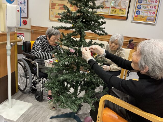 クリスマスツリーの飾り付けはご入居者の皆様にも協力していただきました(⌒∇⌒)