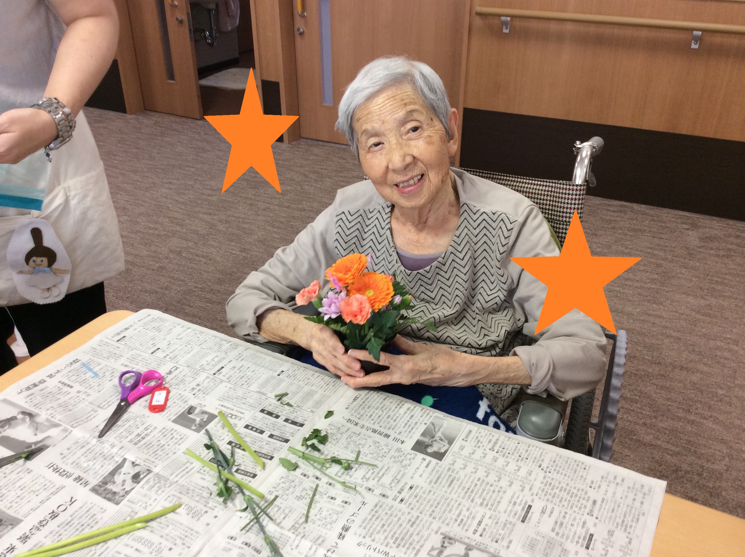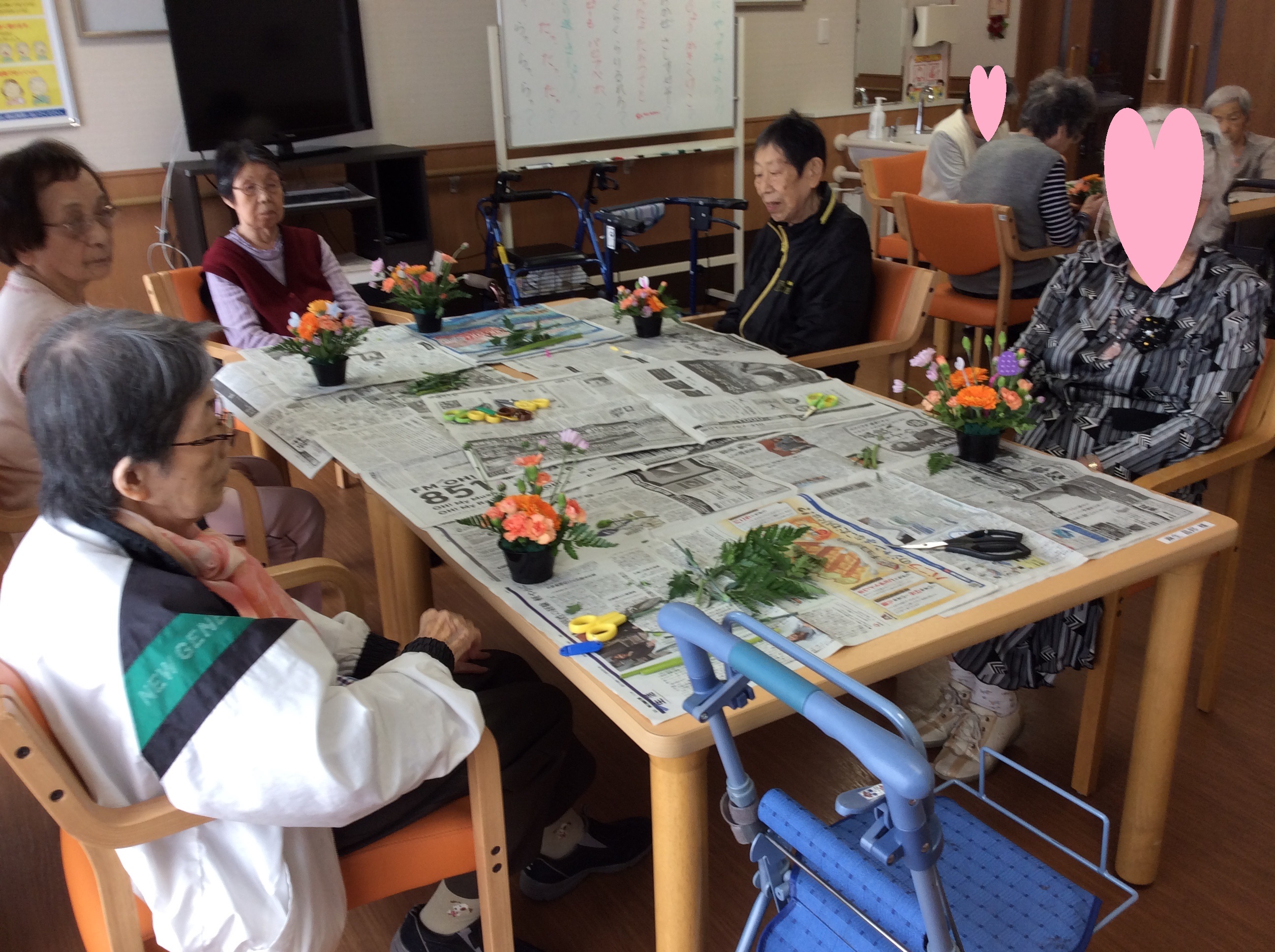 参加されたご入居者の中には、花が好きで花の種類等をお話されながら作っておられた方や、きれいね~と言葉にしながら作っておられる方など、皆さん思い思いに楽しまれているご様子でした!