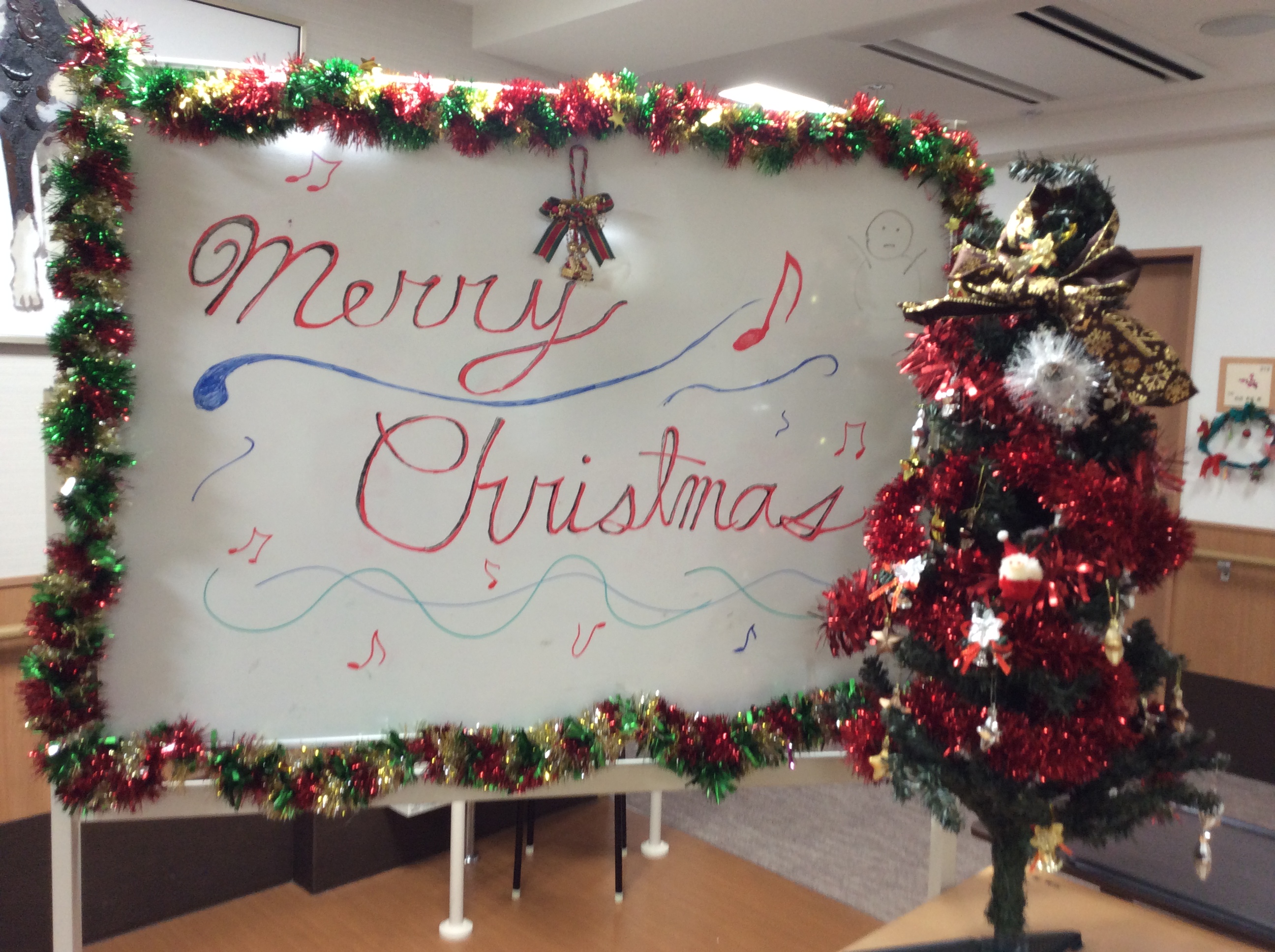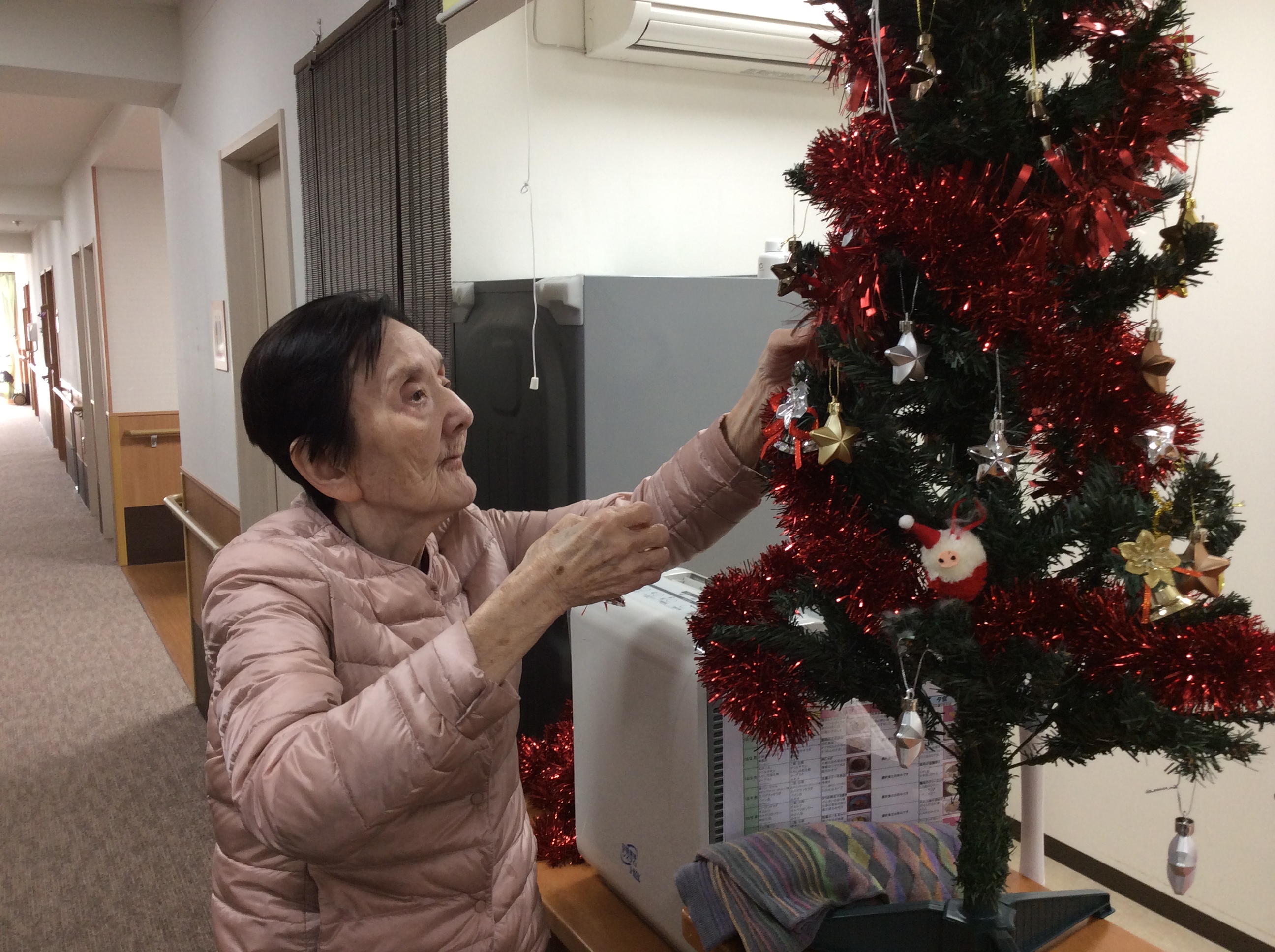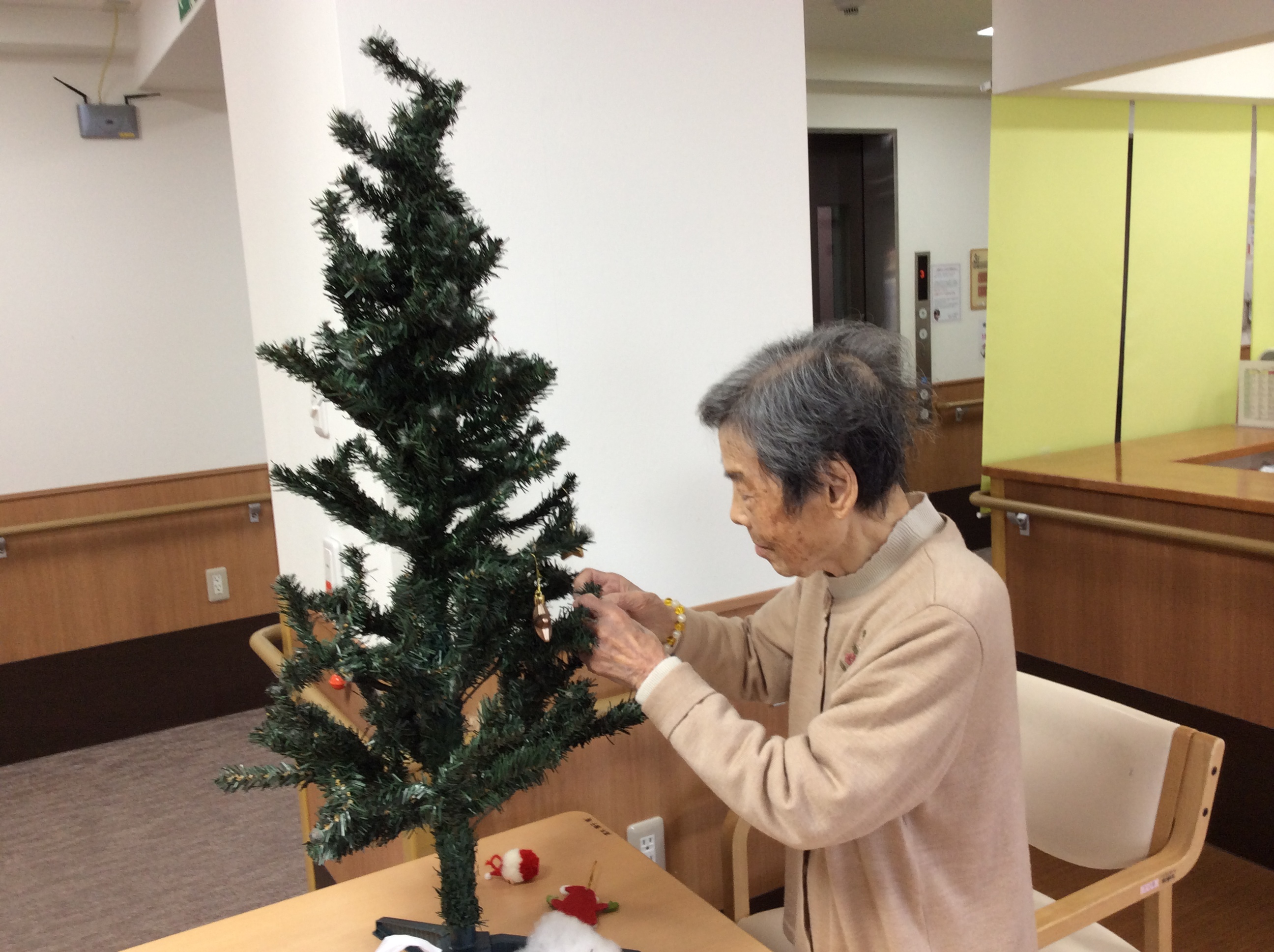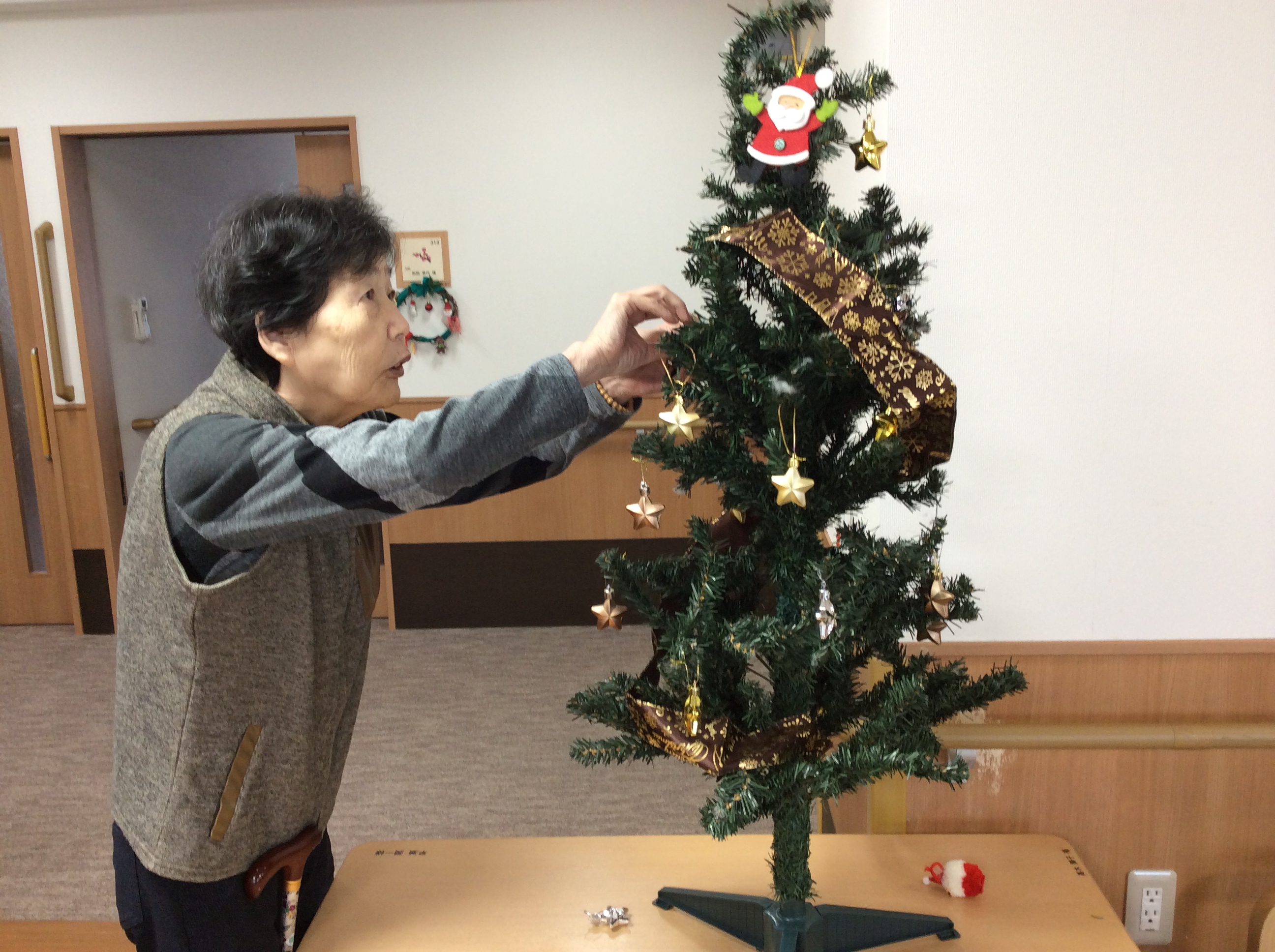 クリスマス前には、こうして飾りつけも入居者様にも参加していただきました。