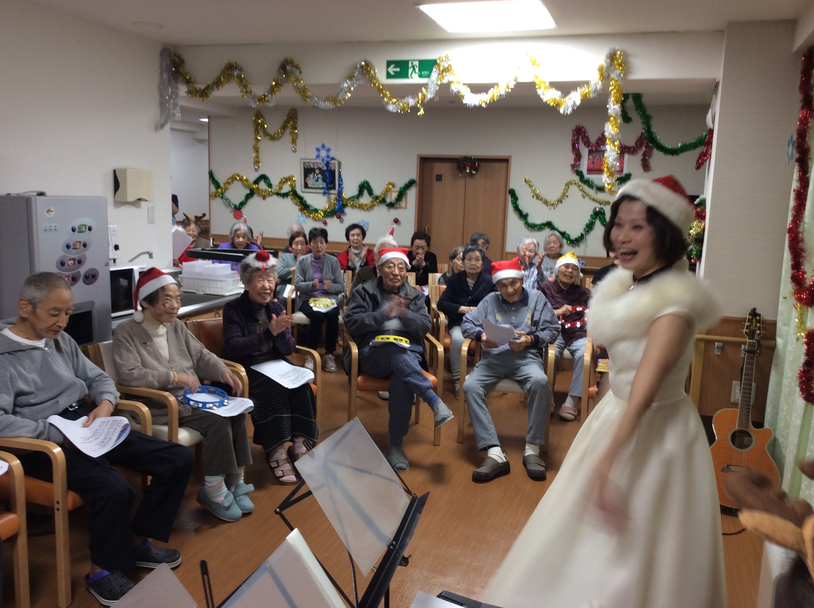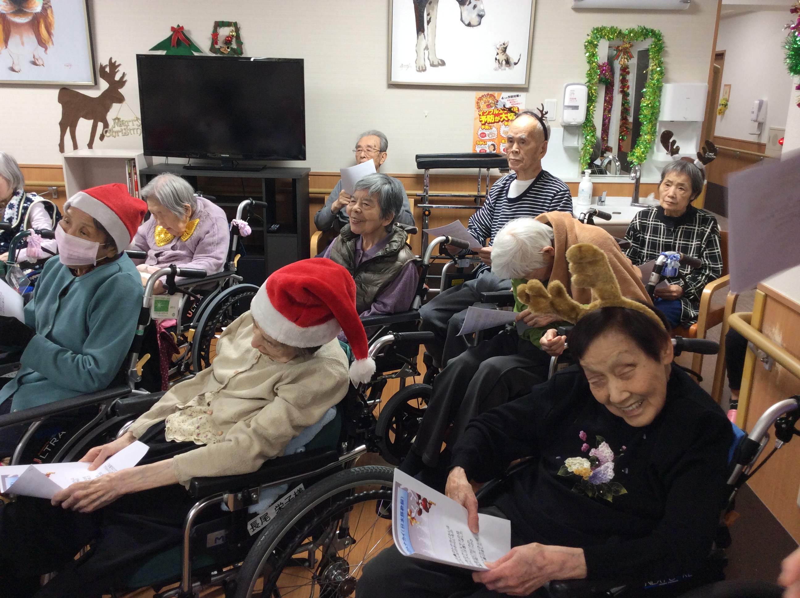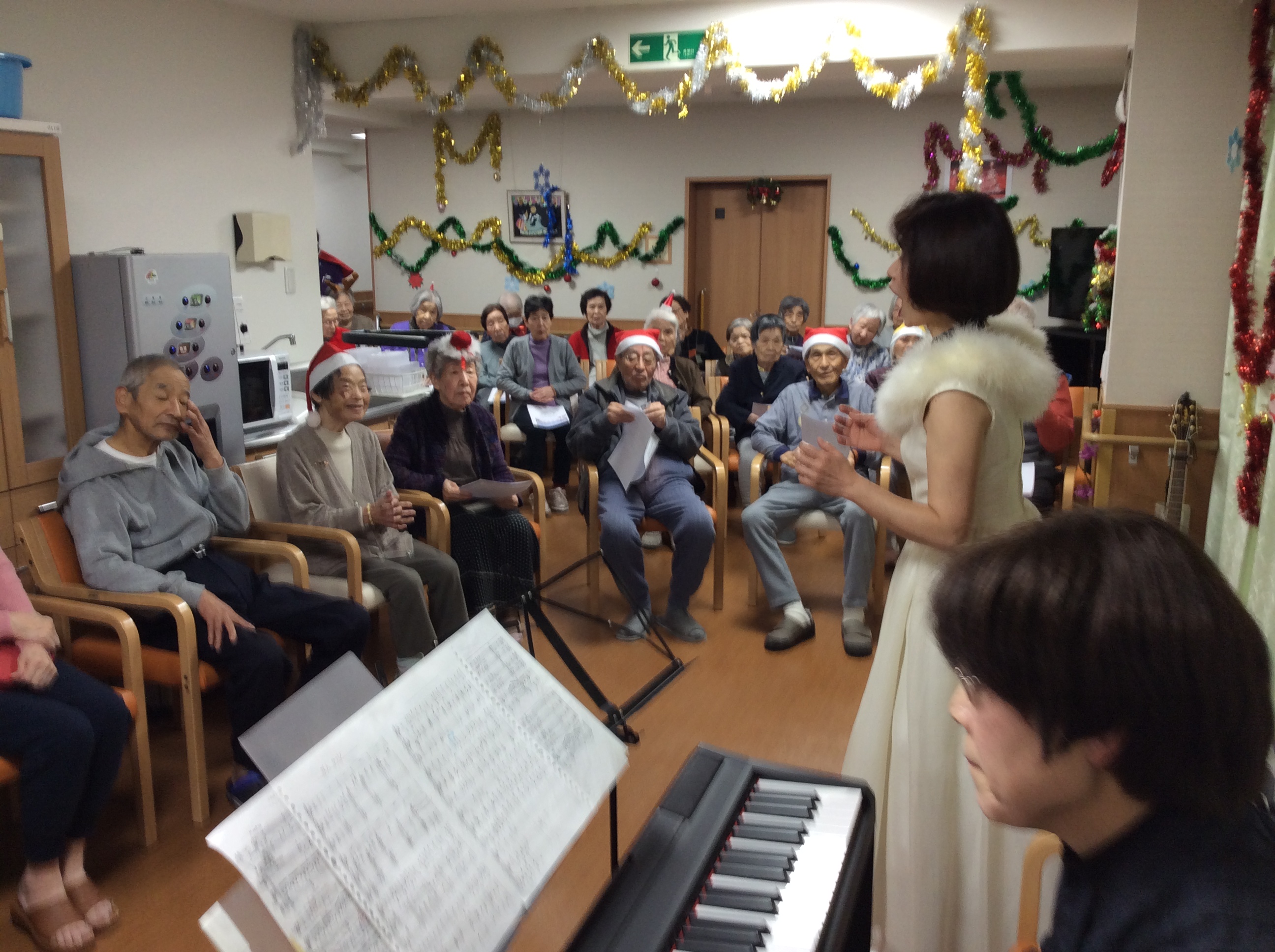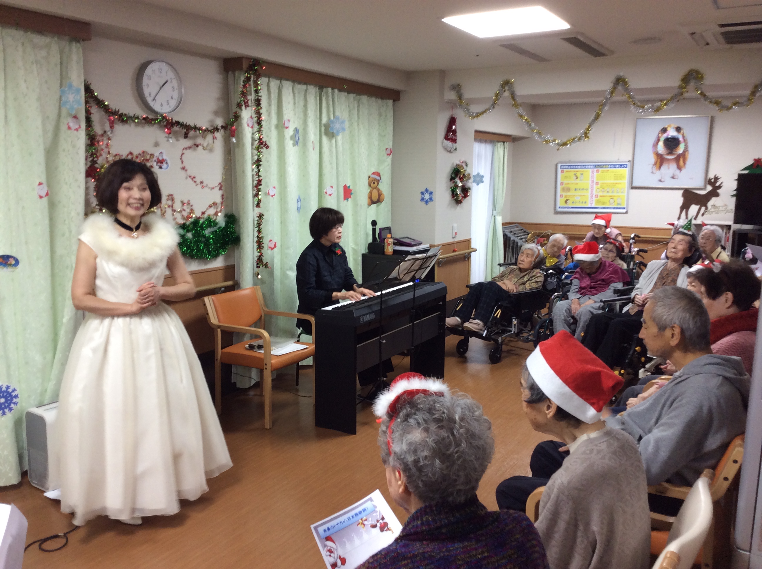 声楽の先生を迎えて、本格的なクリスマスソングの合唱を入居者様と共に大合唱しました。