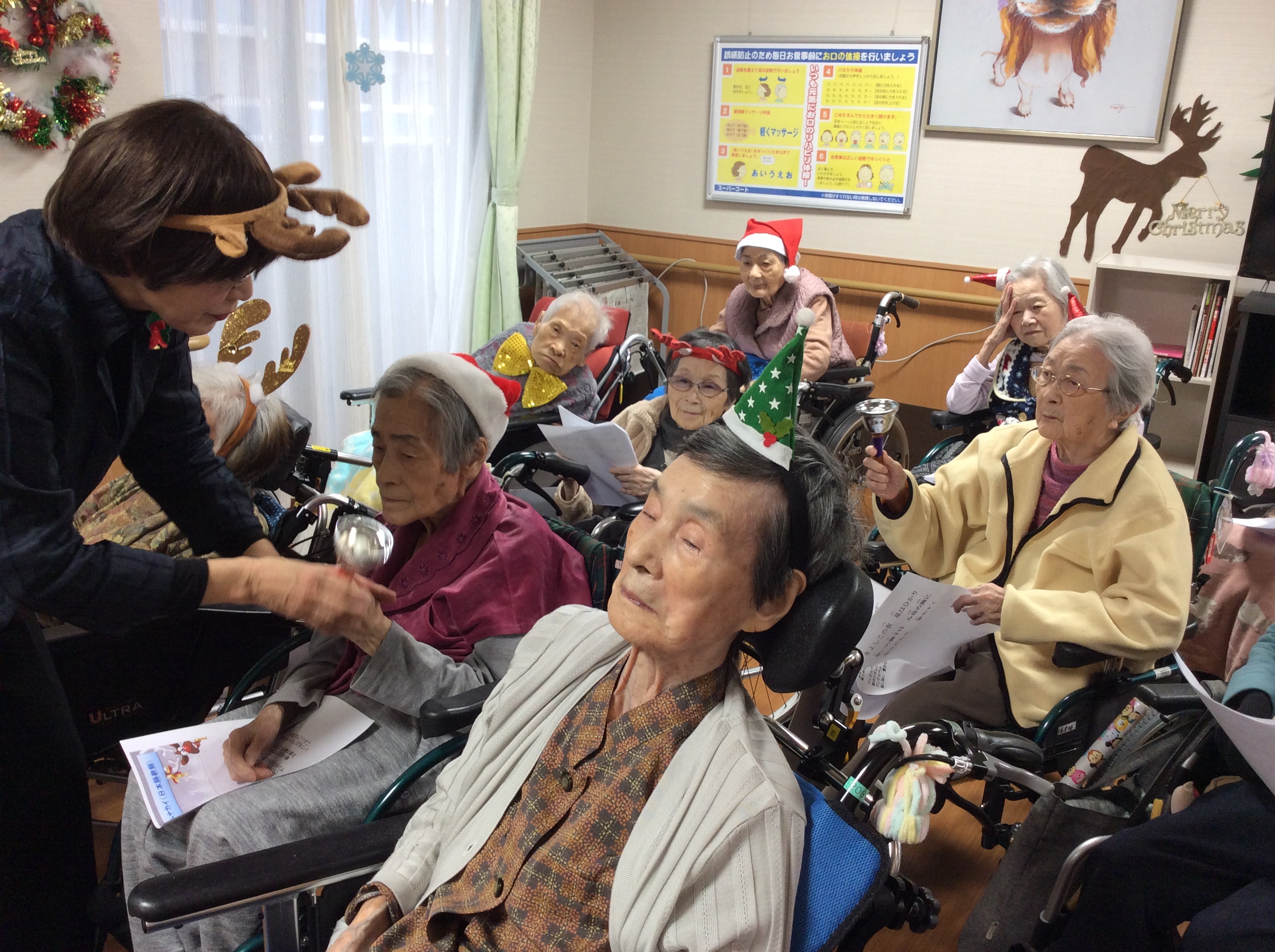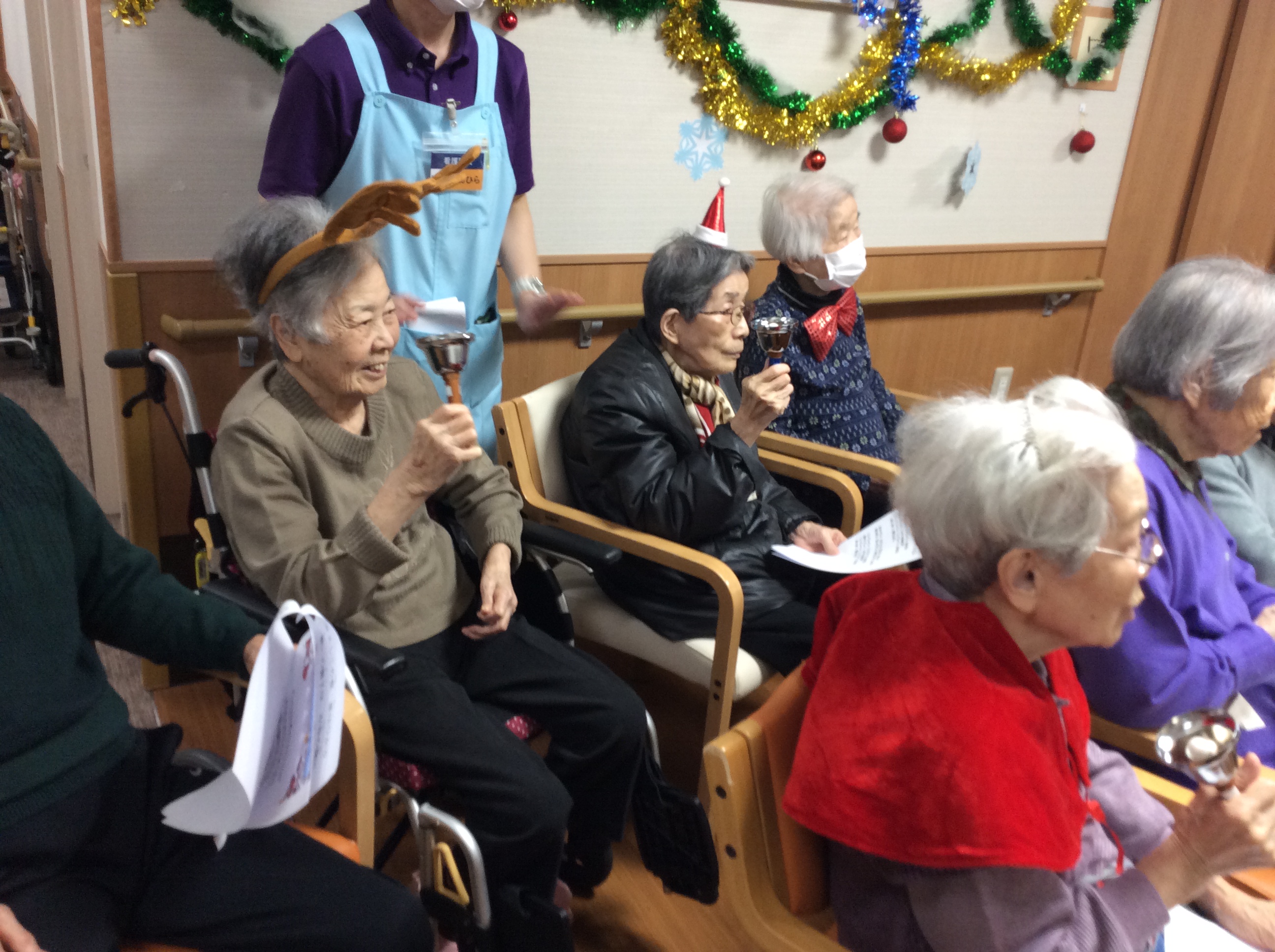 ハンドベルを手に、なんとなんと、入居者様が第九を奏でてくれましたぁ~~~♬~♫~♪~(^^♪