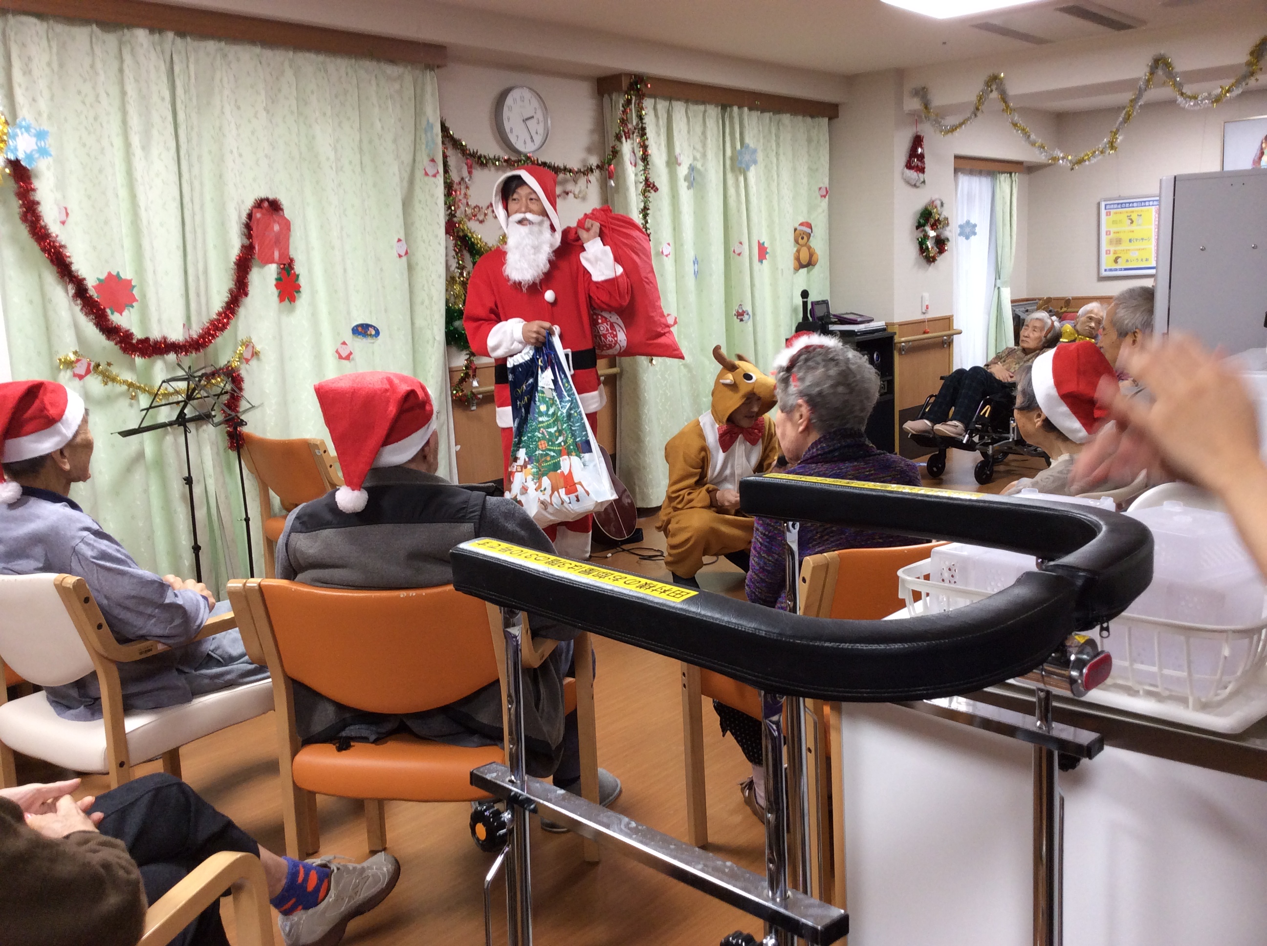 先ほどのトナカイを従え現れたこの素敵な吉原(施設長)サンタの雄姿!