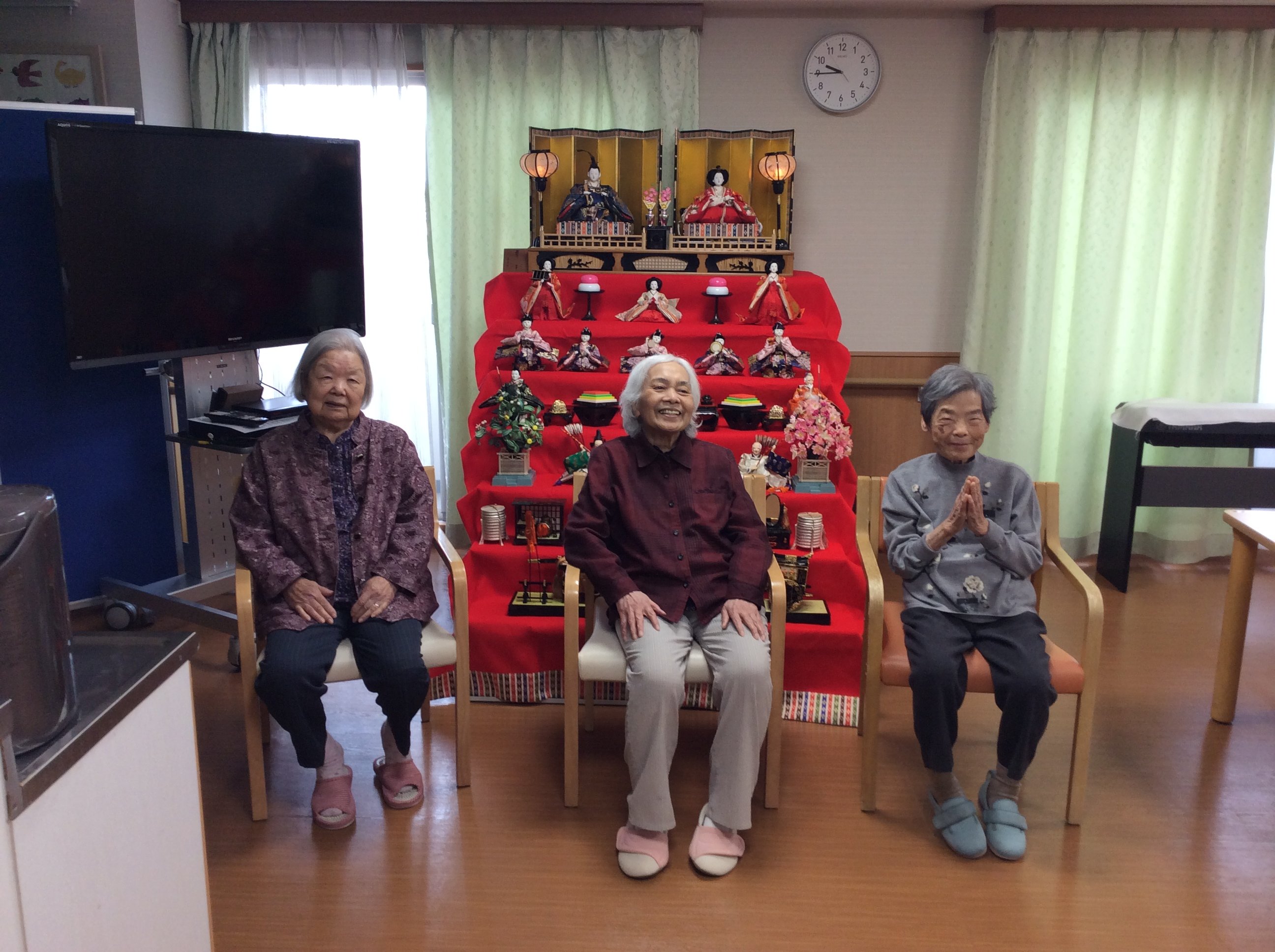 世間の暗い風もお雛様のご利益に肖り、我が施設では