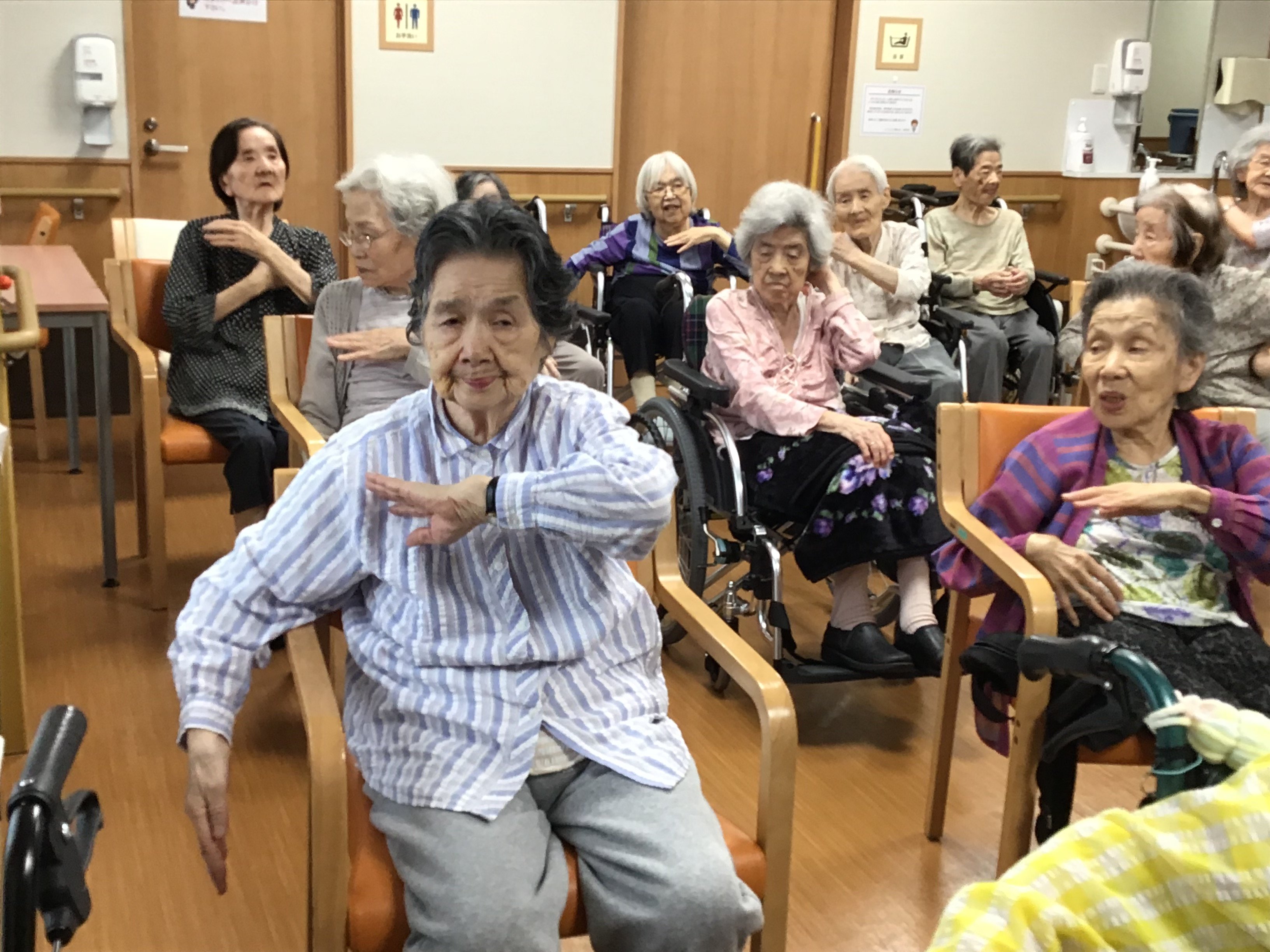 ただ身体を動かすだけでなく、歌あり笑いあり、みんな楽しそうです。