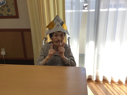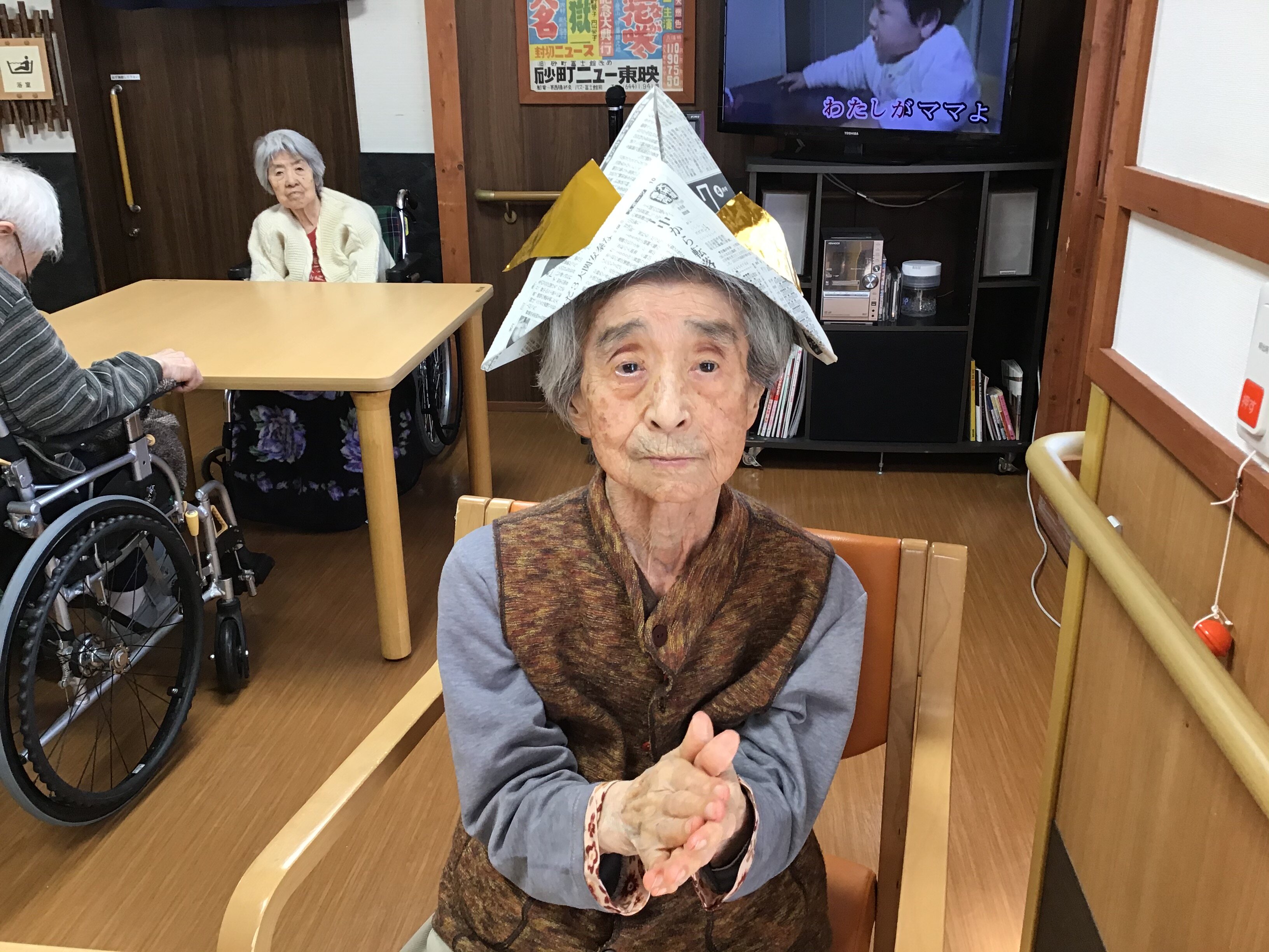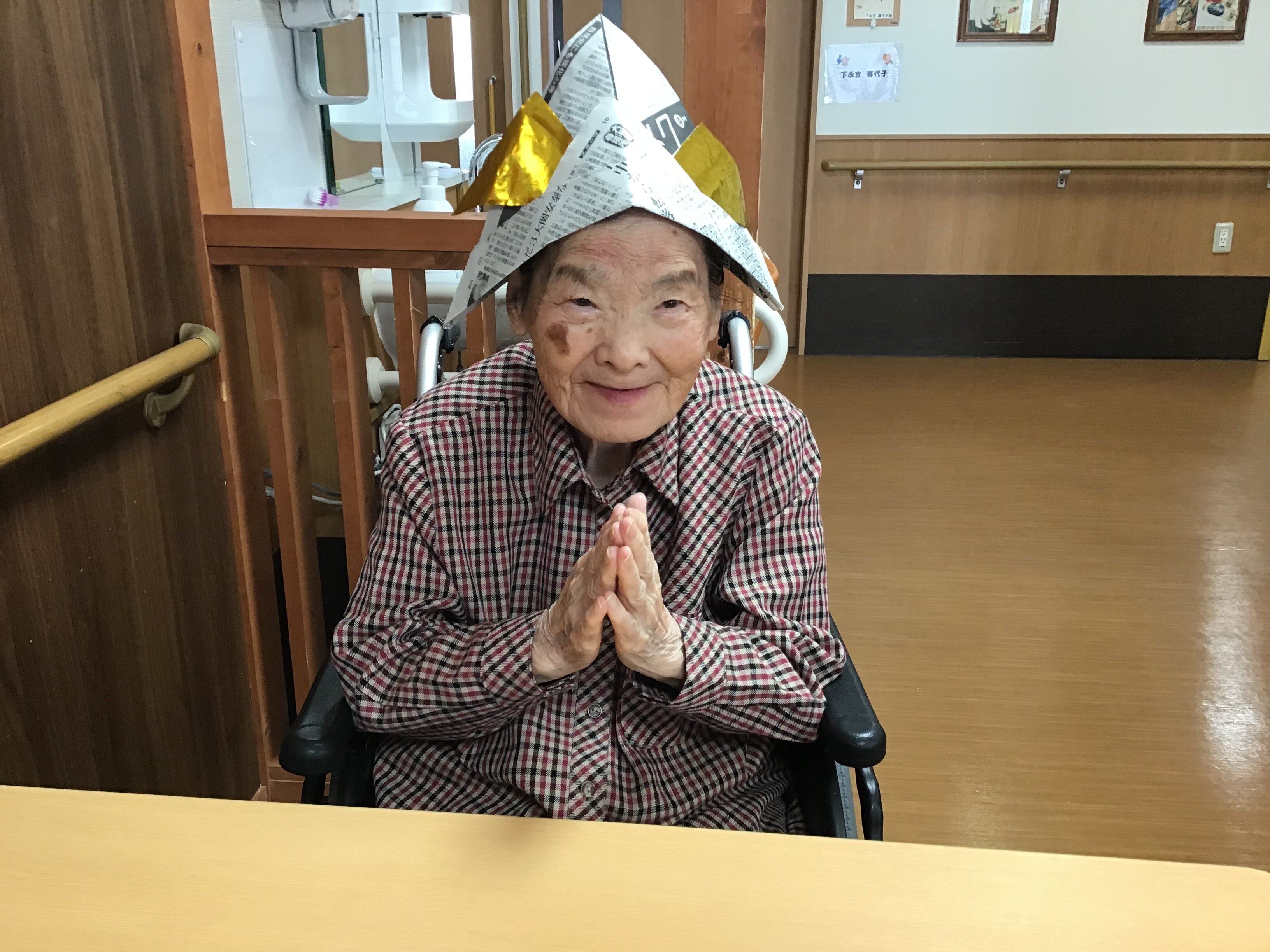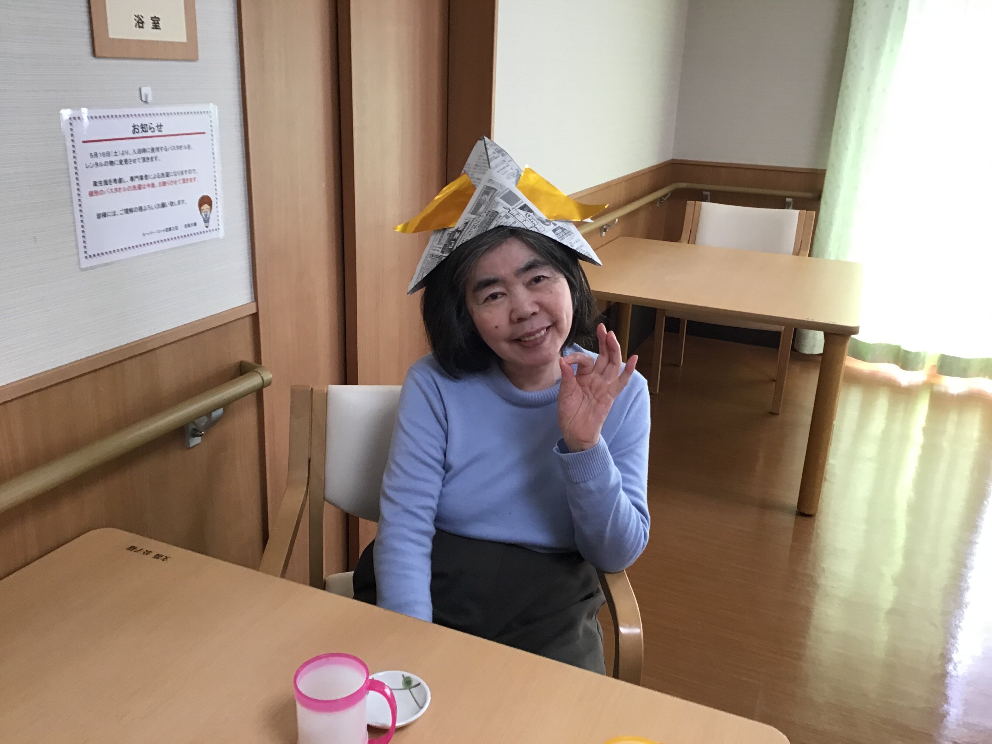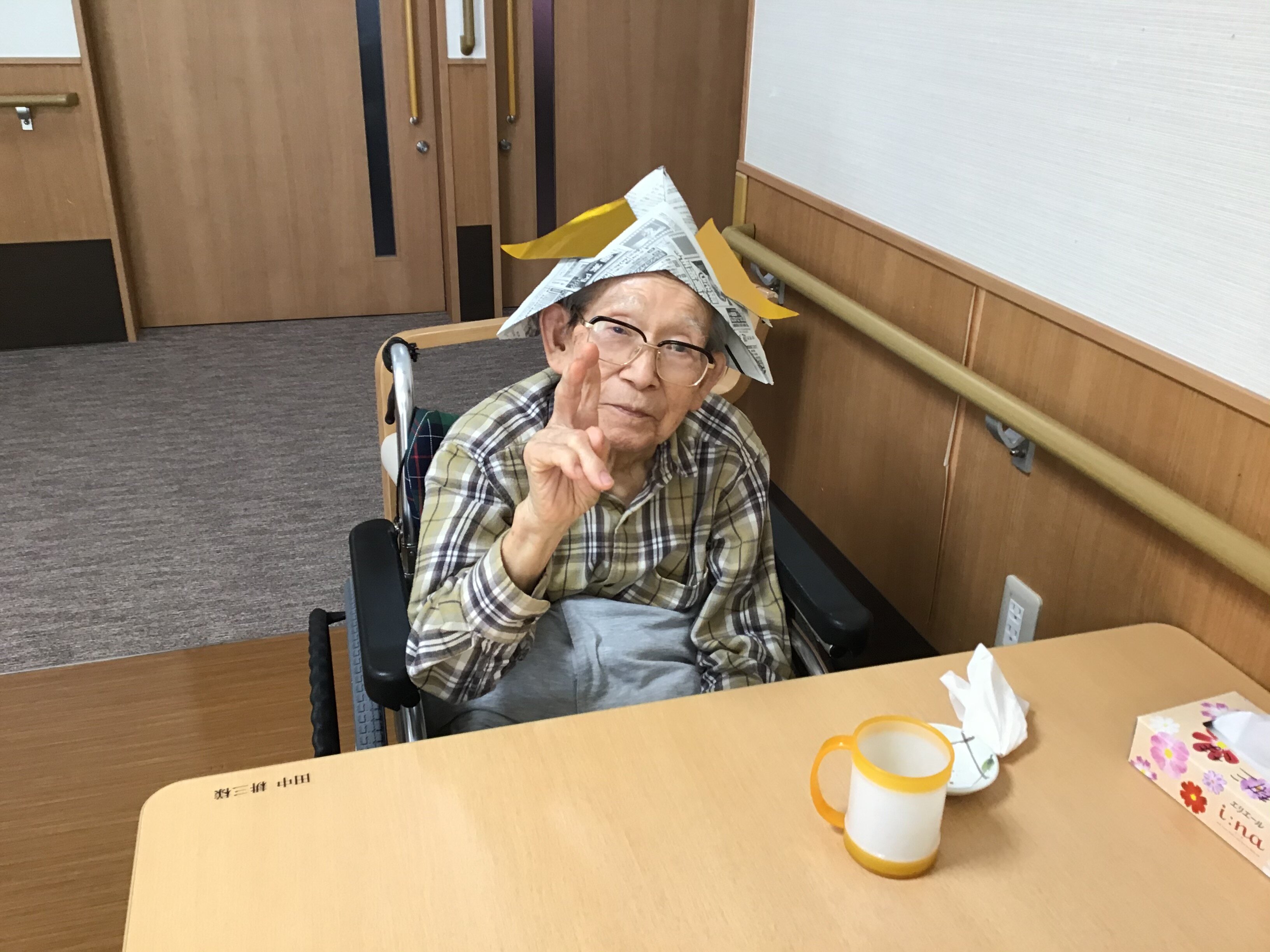 先月にこどもの日の兜をご入居者に被って頂いたり