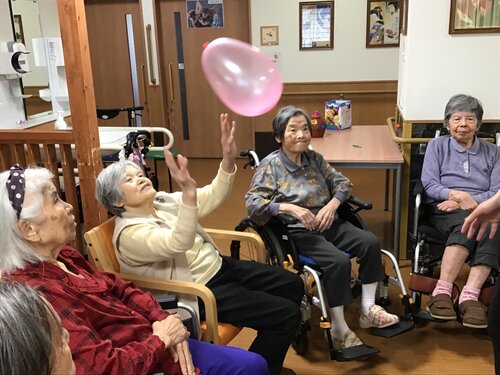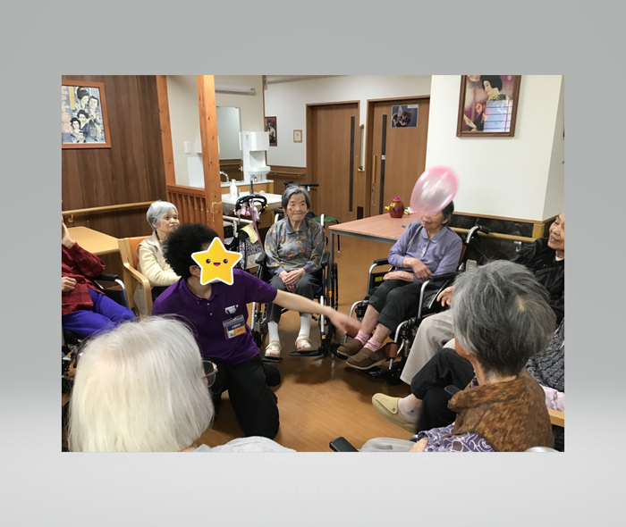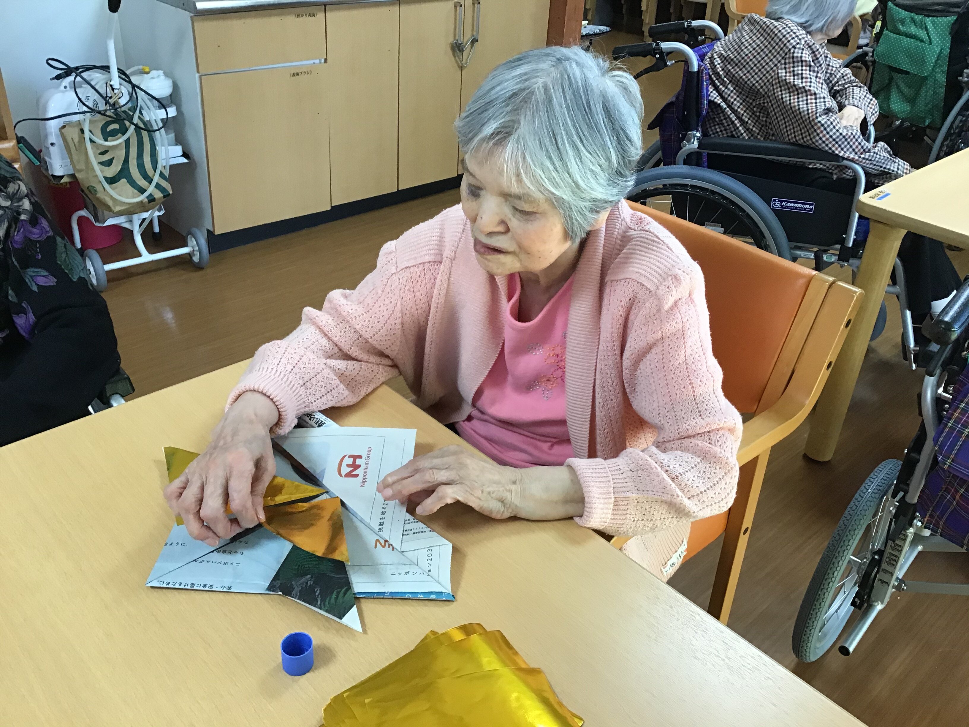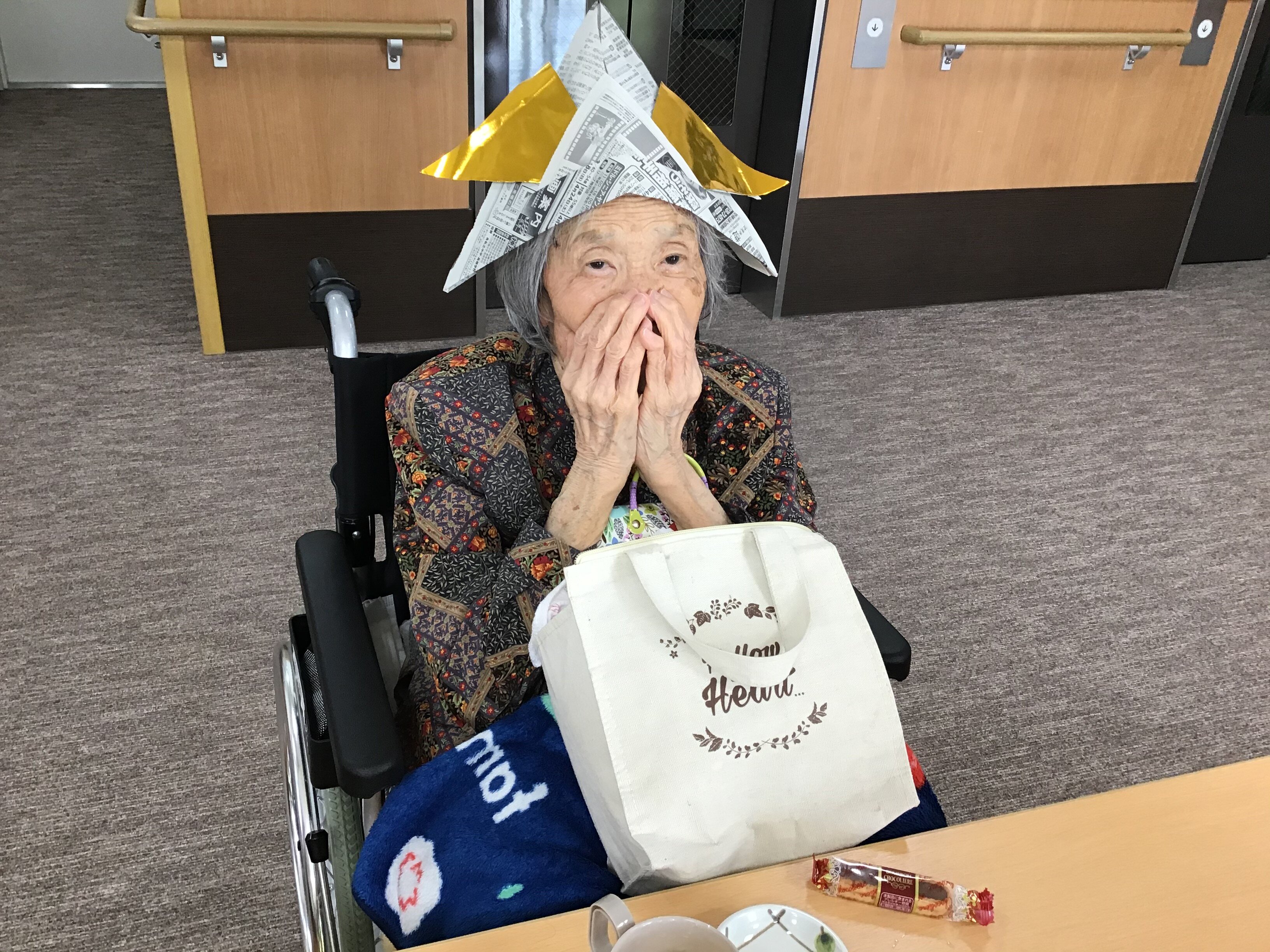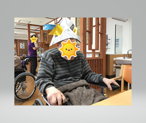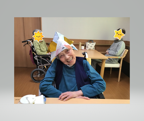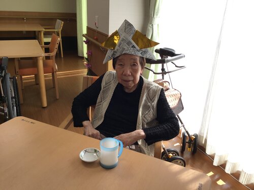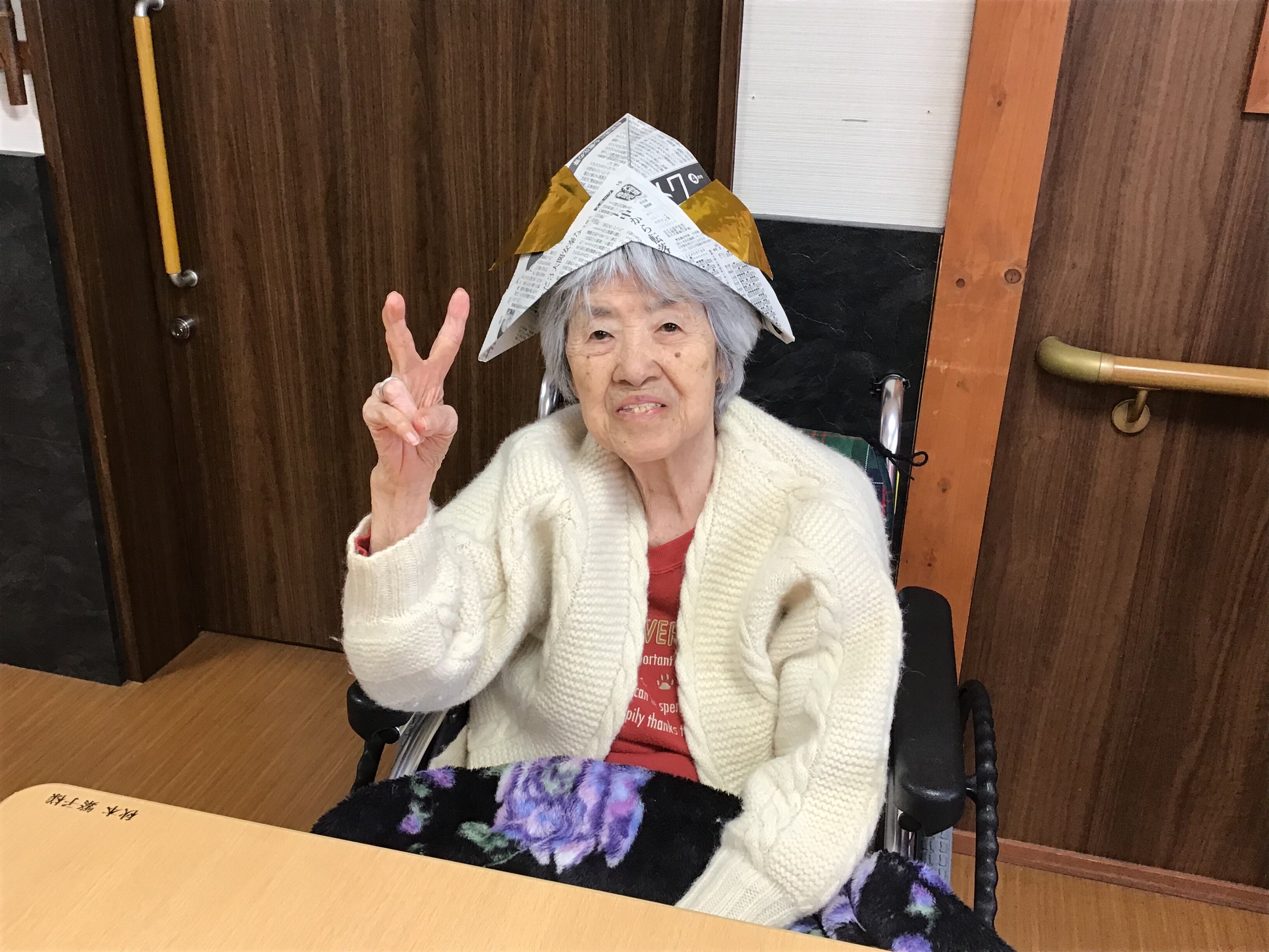 先月にこどもの日の兜をご入居者に被って頂いたり