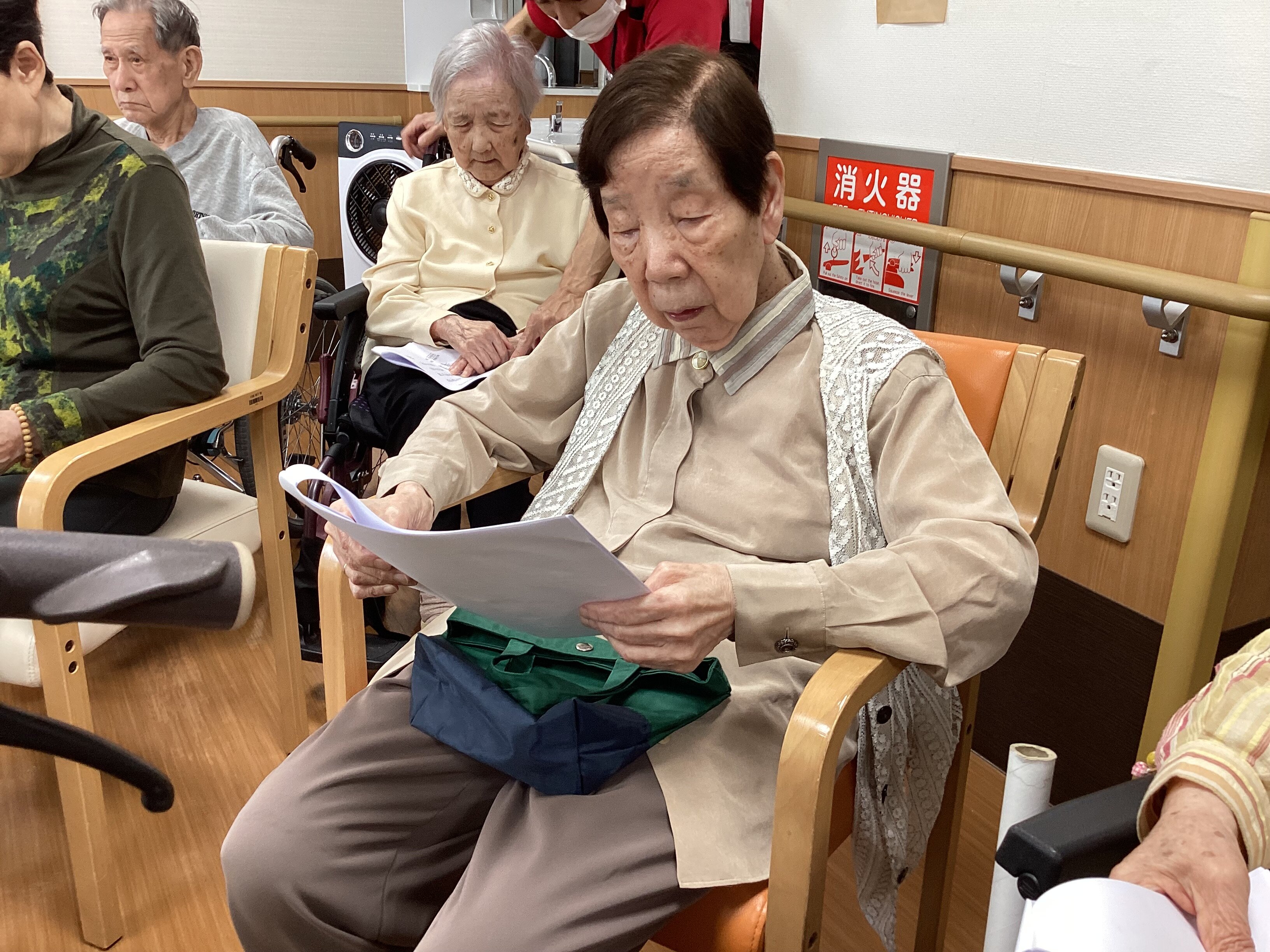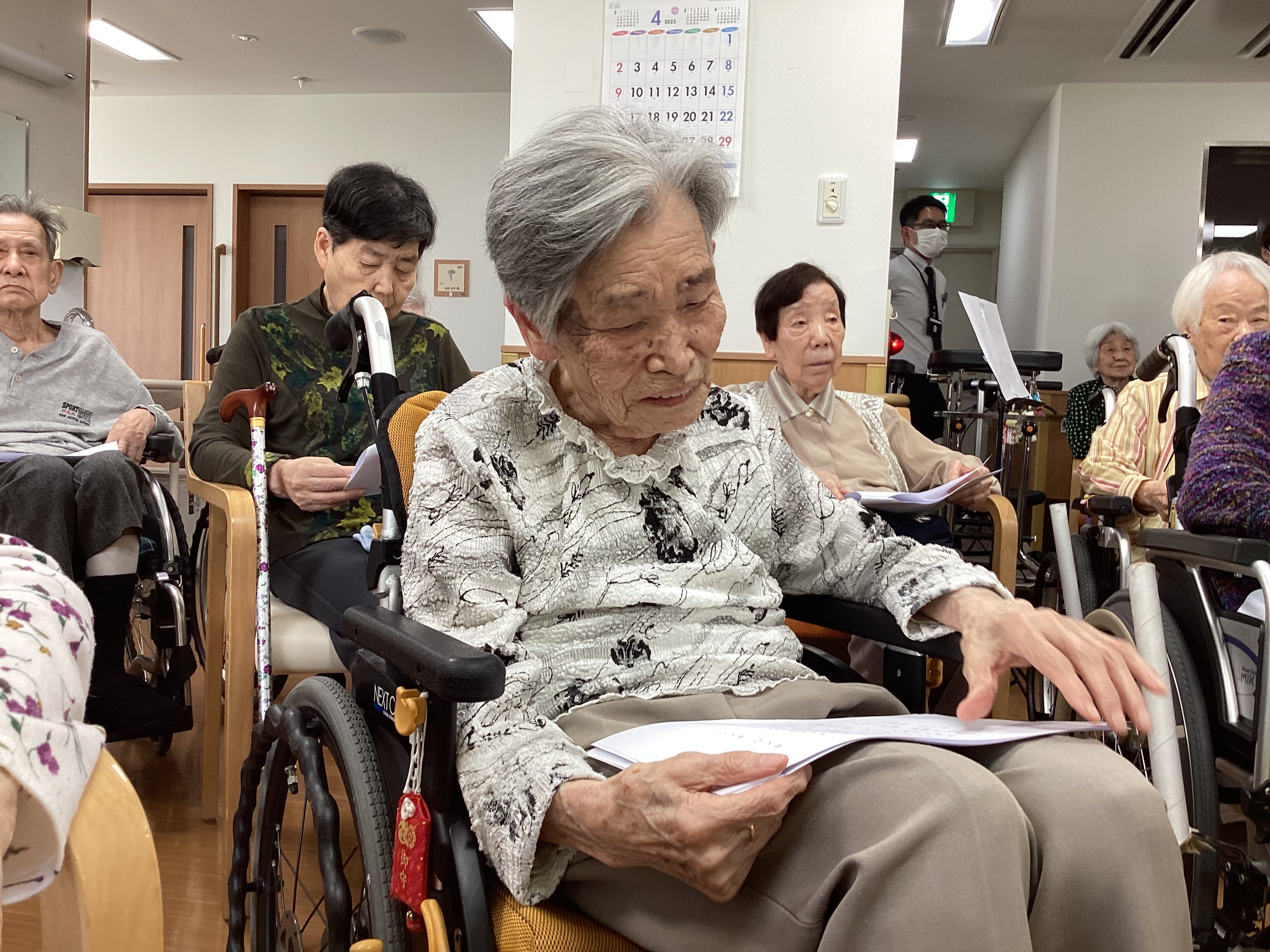 ご入居の皆様は歌を歌うのがお好きな方が多く、前日から楽しみにされているご入居者もおられました!(^^)!