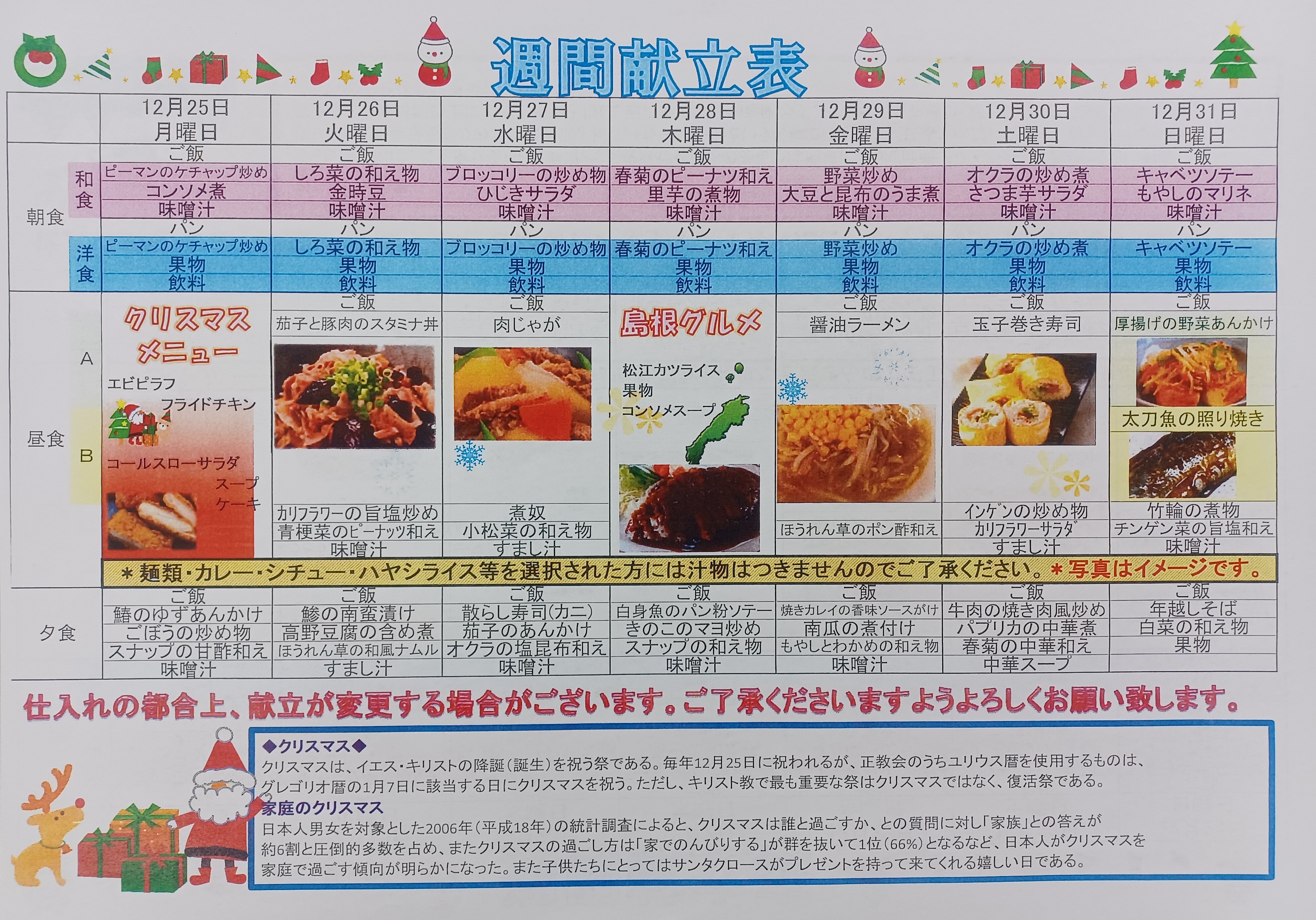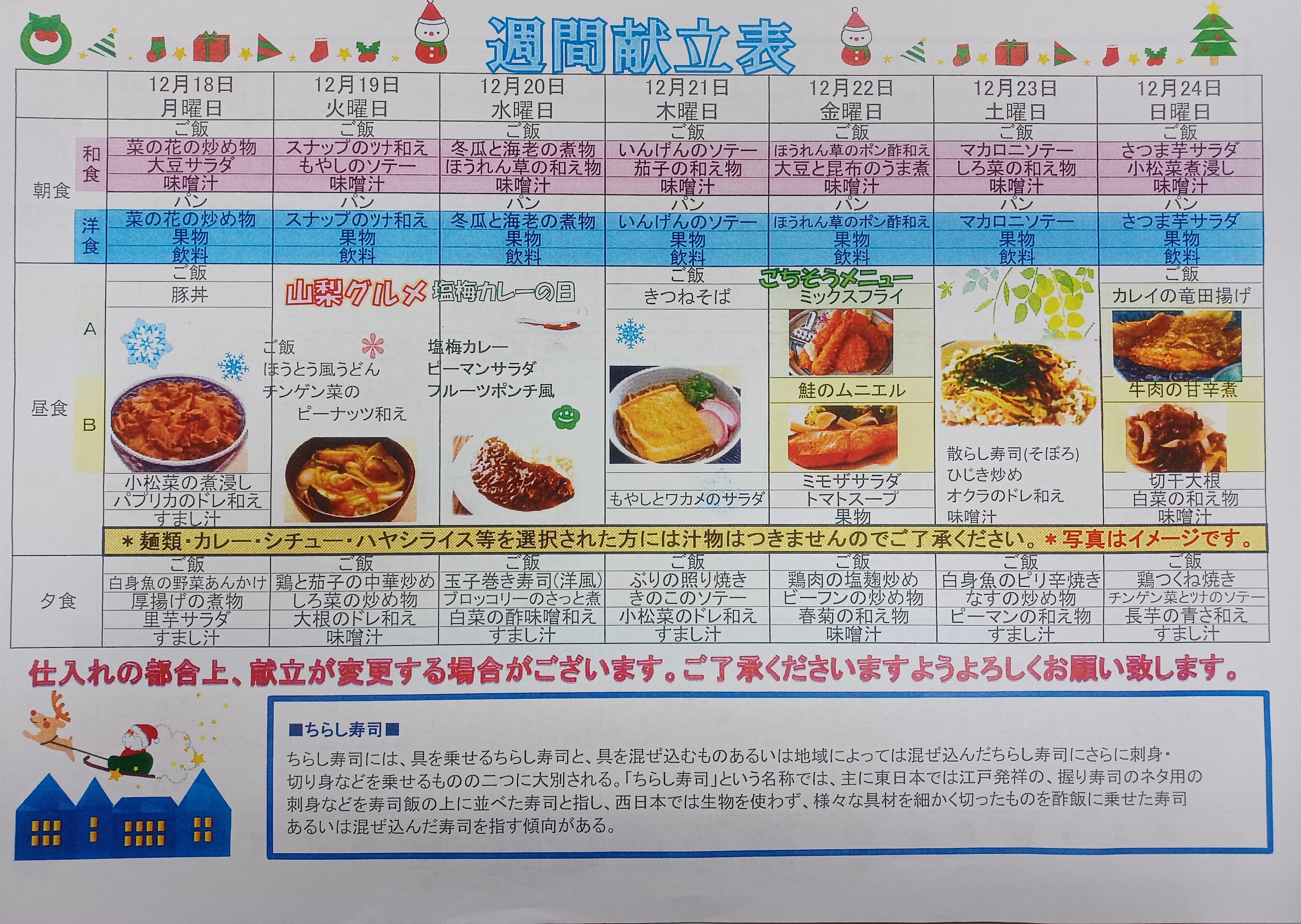 12/22(金)昼食にてごちそうメニューが提供されましたので、ご報告いたします。