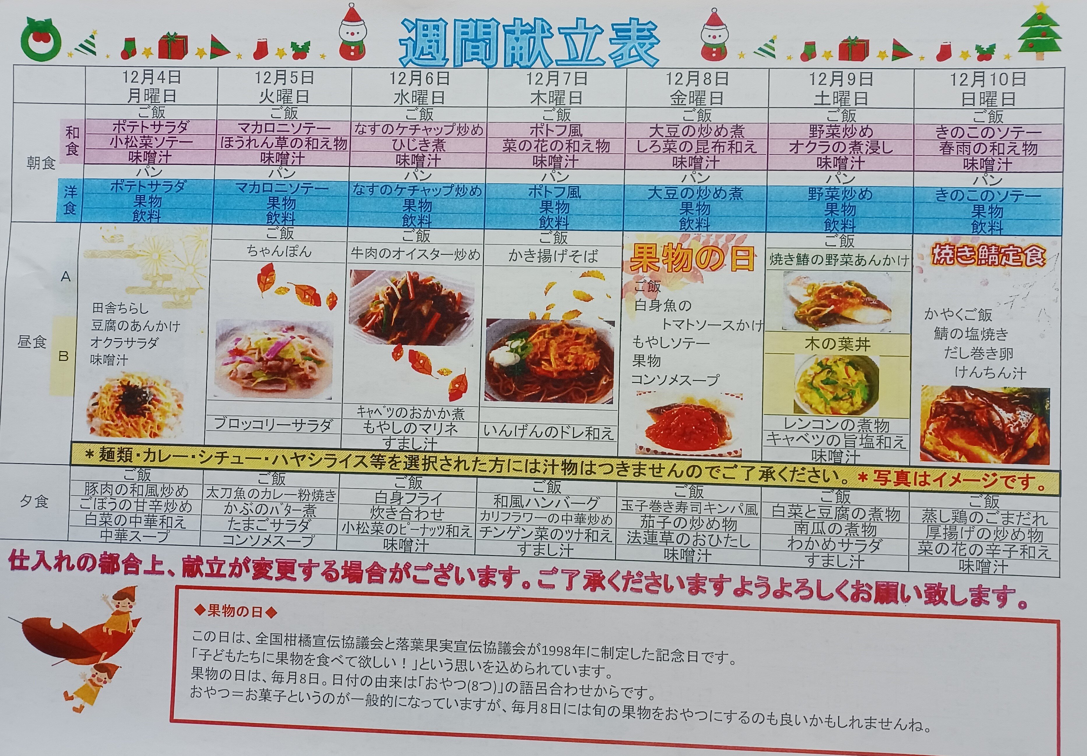 12/4(月)~12/10(日)の献立になります(*^-^*)
