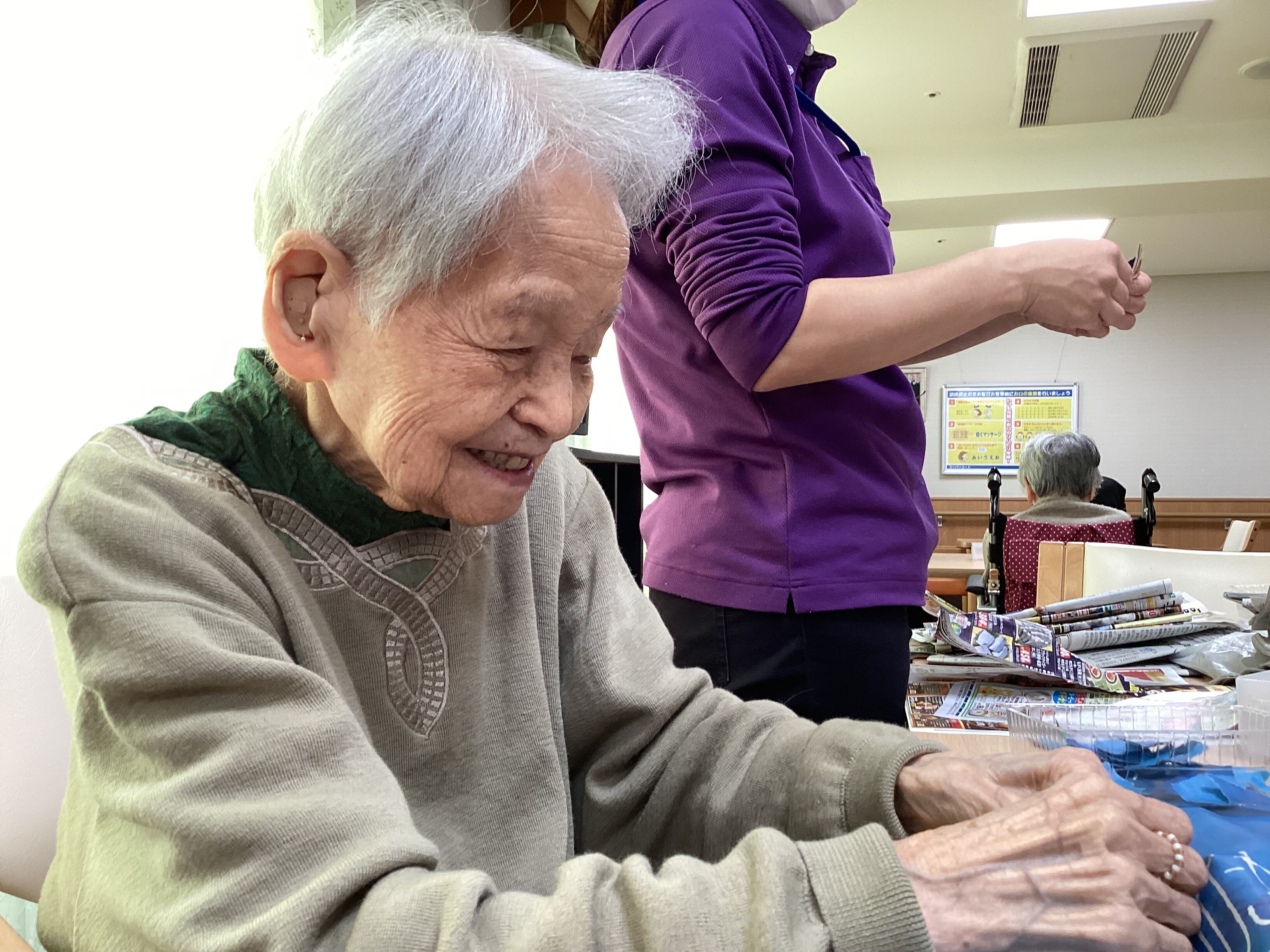 楽しそうな貼り絵の準備、生き生きとしたいい笑顔ですね(^^♪