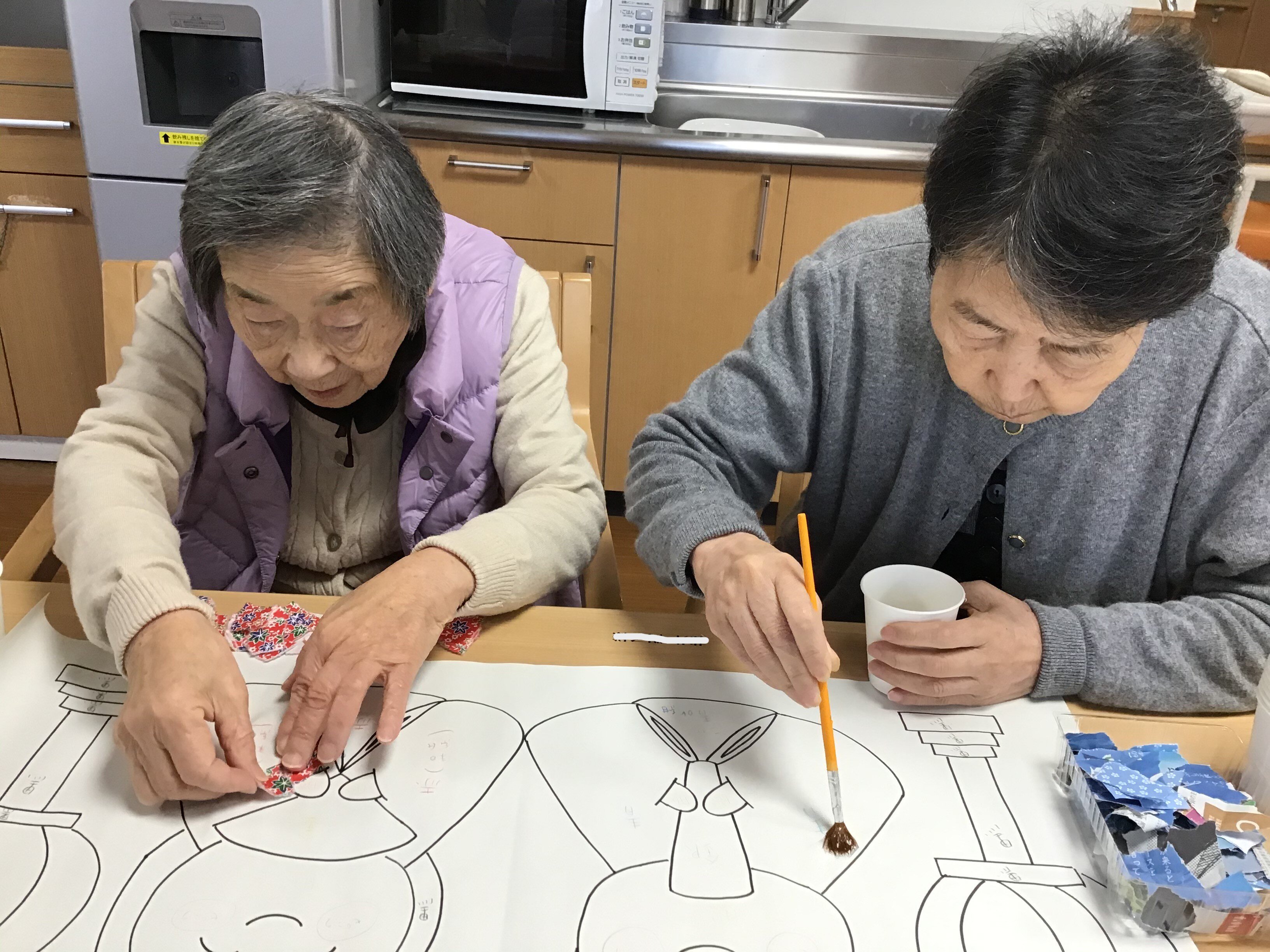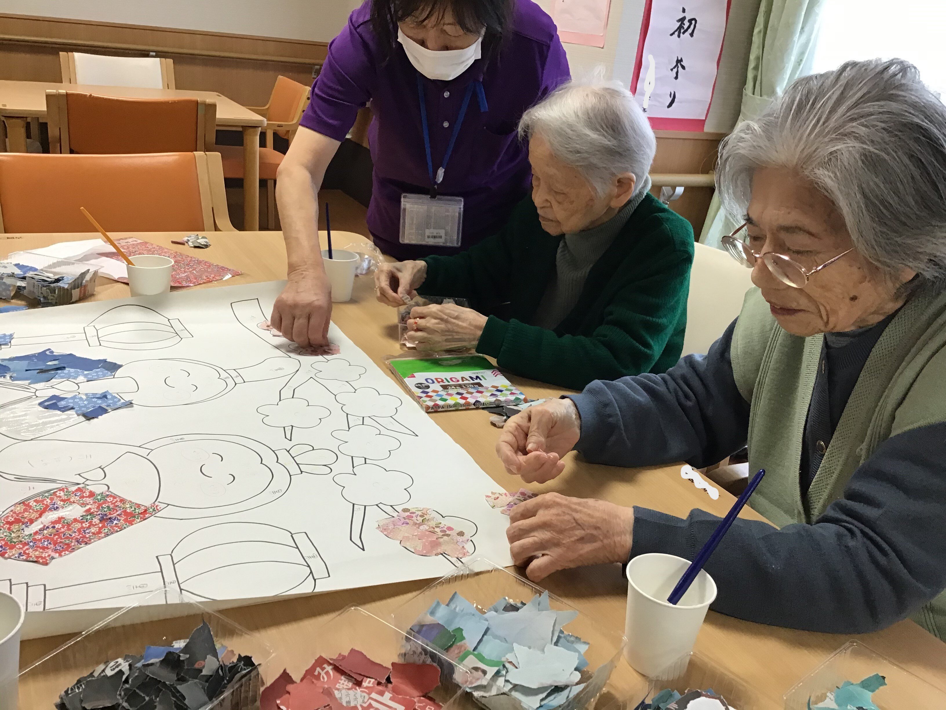 今回もご入居者・職員で貼り絵の準備をしていおります(#^^#)