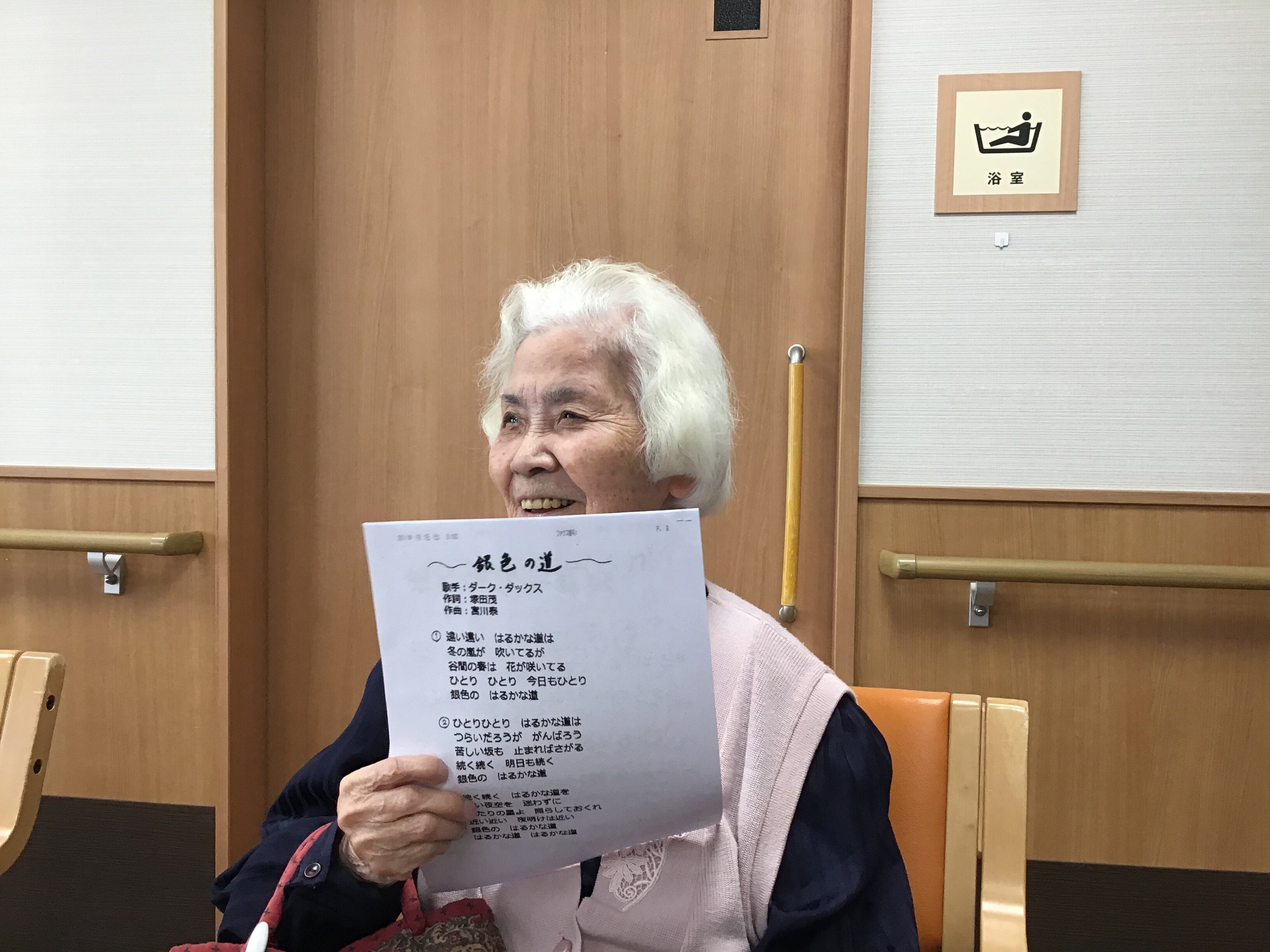 音楽レクリエーション終了後、「楽しかったわ」「来月の音楽レクリエーションが待ち遠しい」等たくさんの喜びの声をいただきました。